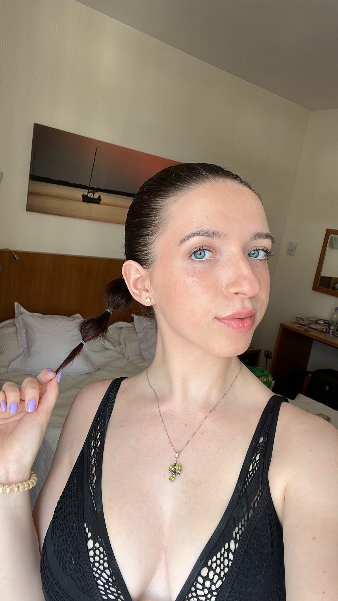 The cutest, B cups, pale, a little conical, puffy nipples