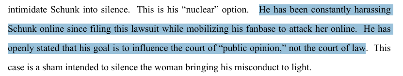 >>946626377U are so stressed about the case, that u are missing the point: even if it cant be used as the main point of the case, it can emerge in the proceedings. U can literally check every lawsuit in the history of the world, u learn stuff that are not central to the point lawyers are making through different avenues.... For example, Amber Heard kissing James Franco in the elevator was exposed in the trial and it had no impact and nobody cared.... Almost like discovery and trial are amazing if u want to learn about behind the scenes stuff