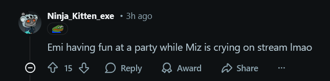 nobody will ever side with mizshit over emiru, anyone with a brain can tell mizshit is an asshole the second he opens his mouth