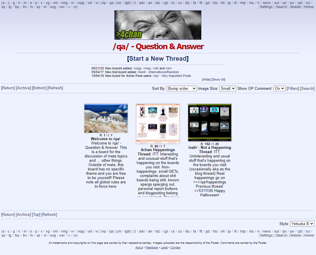 I used to browse /qa/ until operation clean stable, but I don't understand whatever its culture turned into after the migration to the sharty