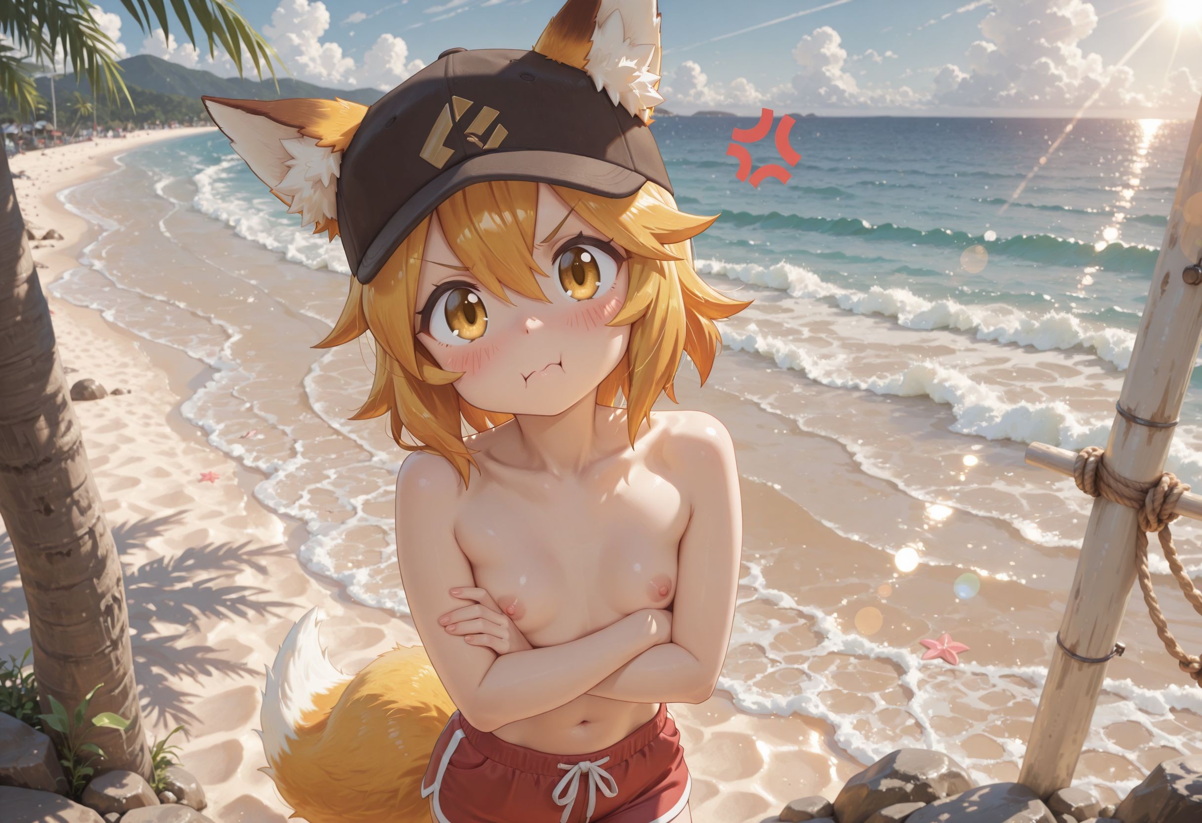 >>946800608Guys are topless on the beach.