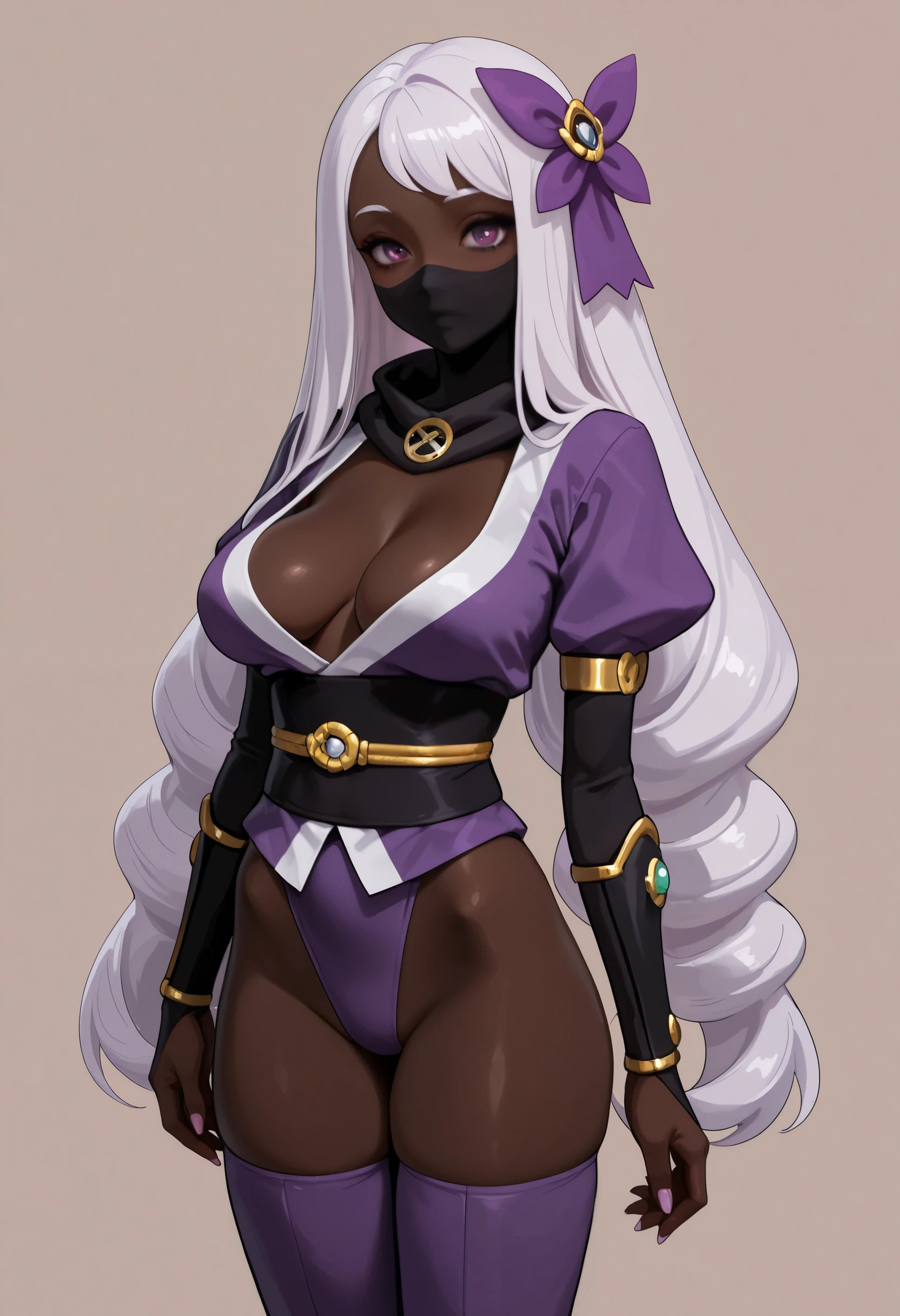 KS, I have no idea how to make this character and none of my models recognize her and I don't see any Loras. Here's a stacked black lady with light purple hair.