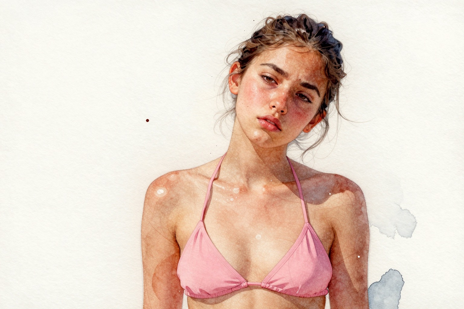 I'm having trouble getting it to produce faces that don't have extremely fake-looking over-plump lips/mouthes. The prompt for this image included:> She has a completely bare face, no makeup, natural skin texture with visible pores and slight redness around the nose. She is not wearing make-up, but has a natural look. She has thin, unattractive lips. The natural skin texture shows faint vertical lines and no plumpness or over-lining.