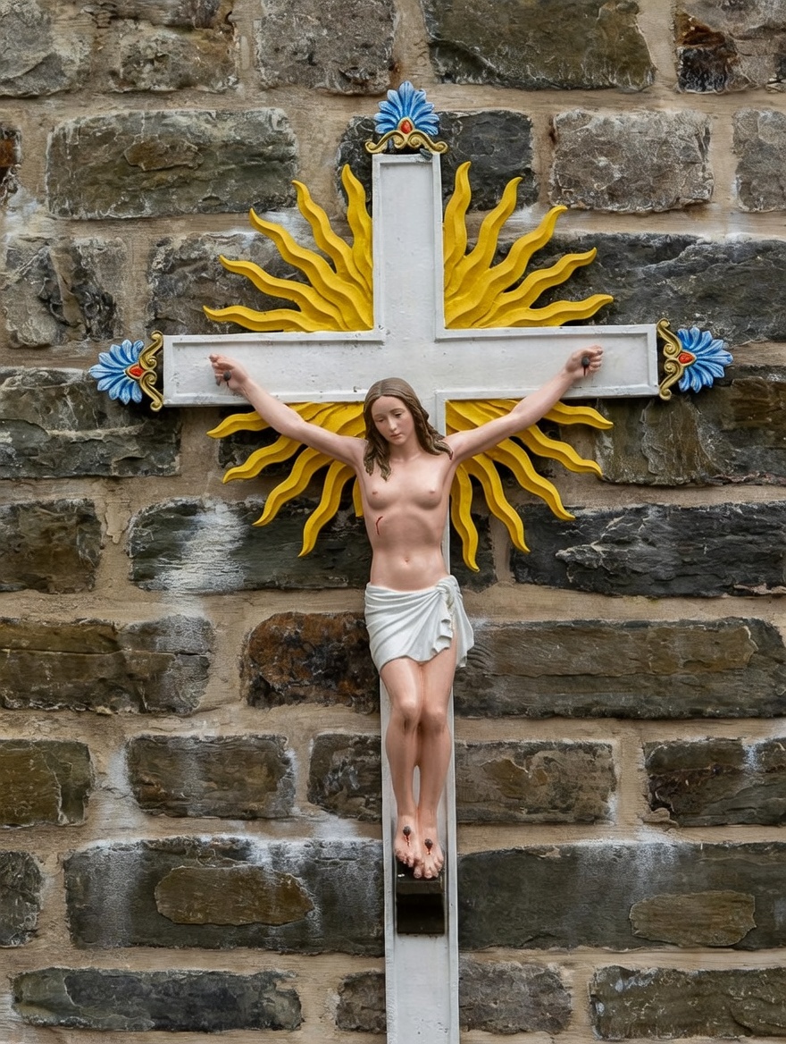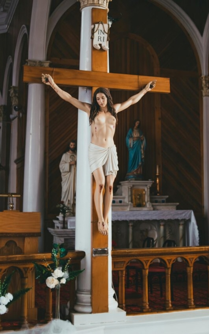 >>947066467Are you a man? Or know anything about male sexuality?Imagine there's no internet porn and there's a building in the middle of the city which prominently features an almost naked woman bound to a cross - like BDSM.