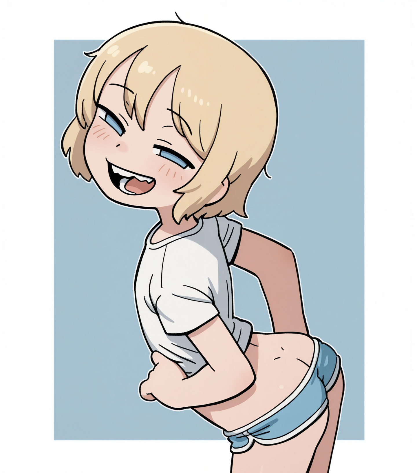 Requesting a silver haired gold eyed loli with a bobcut hairstyle and Japanese aesthetics being a slut