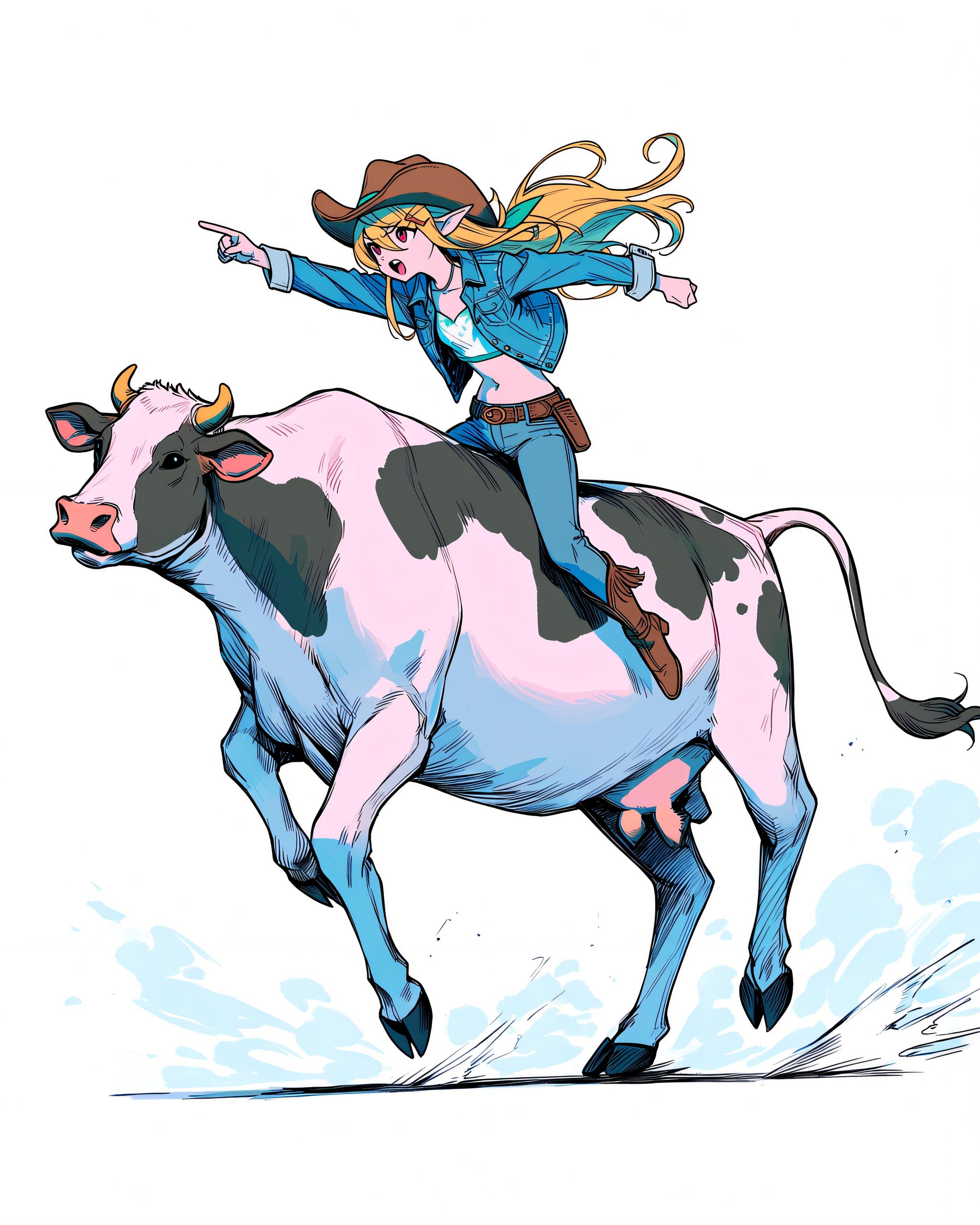 Could some one turn her into a cow-girl while keeping the same general size of breast please