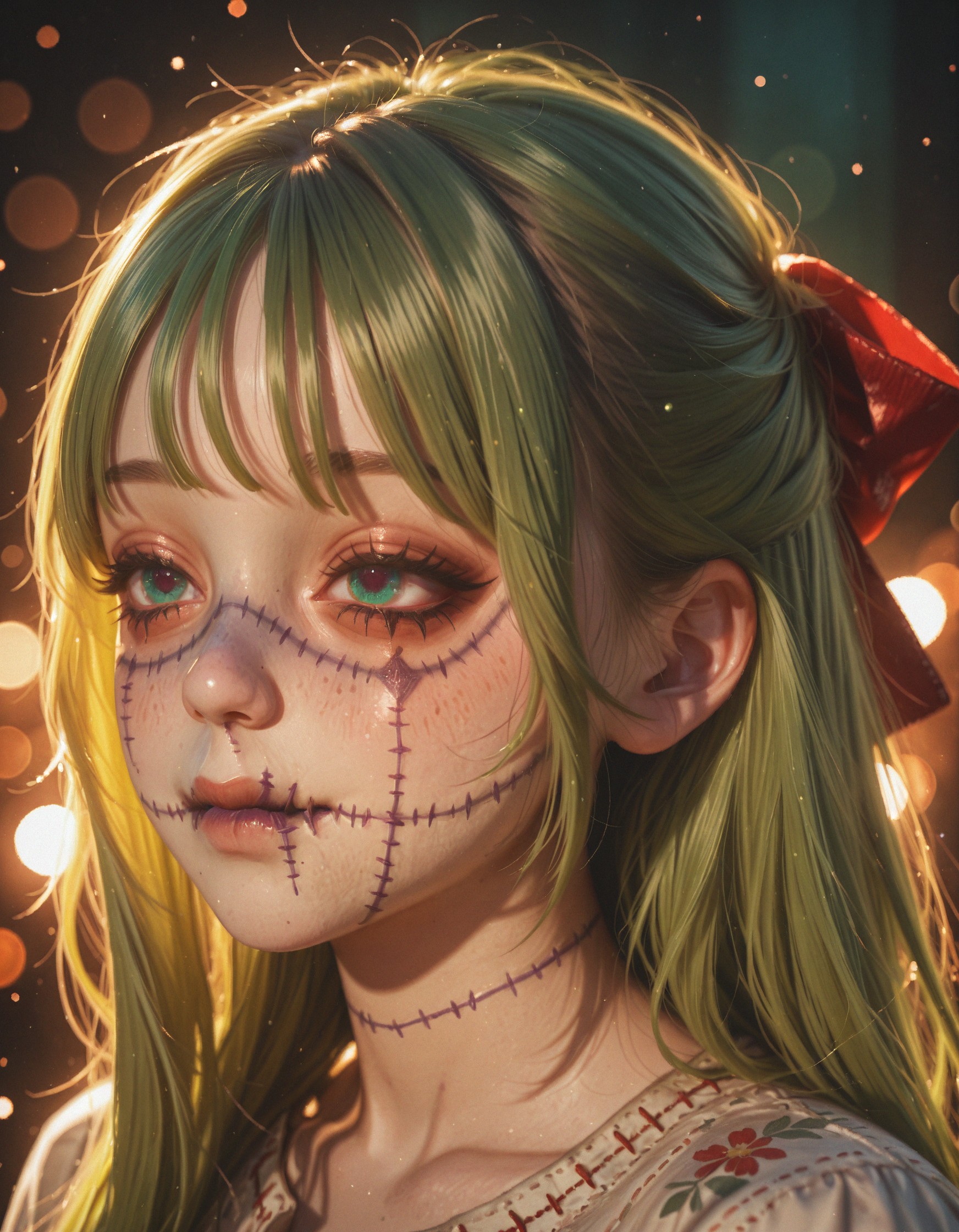 Cannot get eyelids sewn shut, or lips needed together.