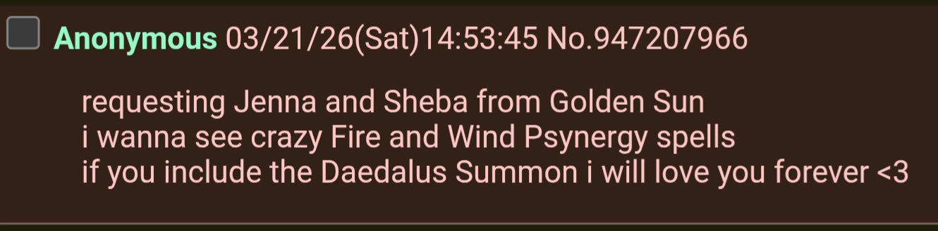 >>947342546Yeah you too! Have a good one <3