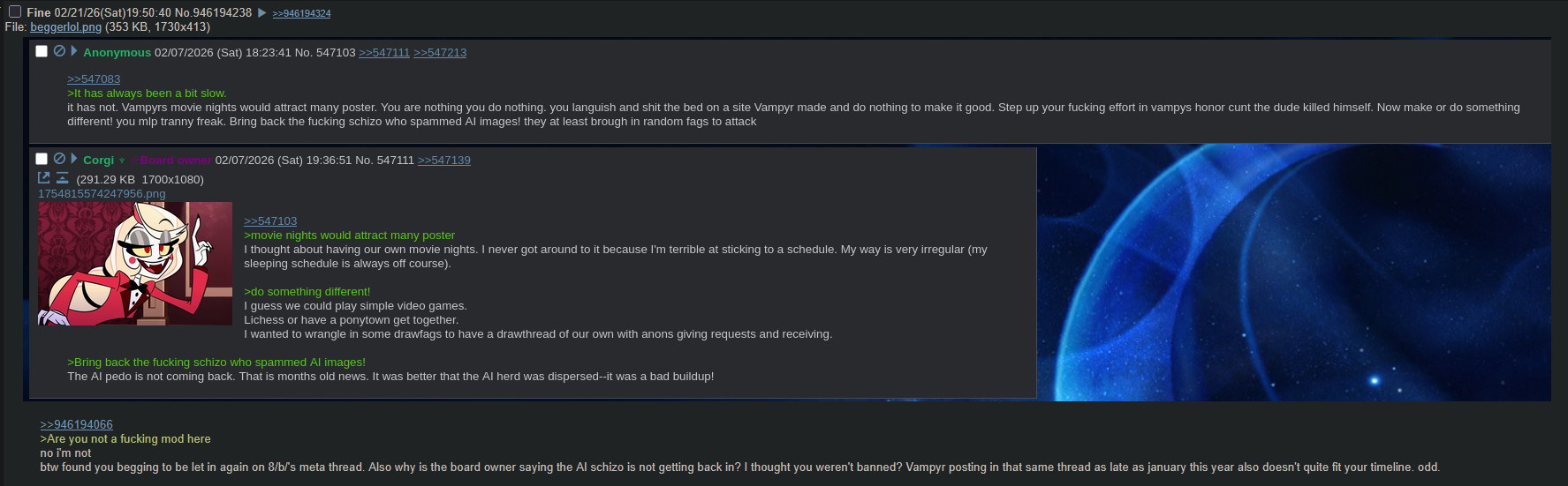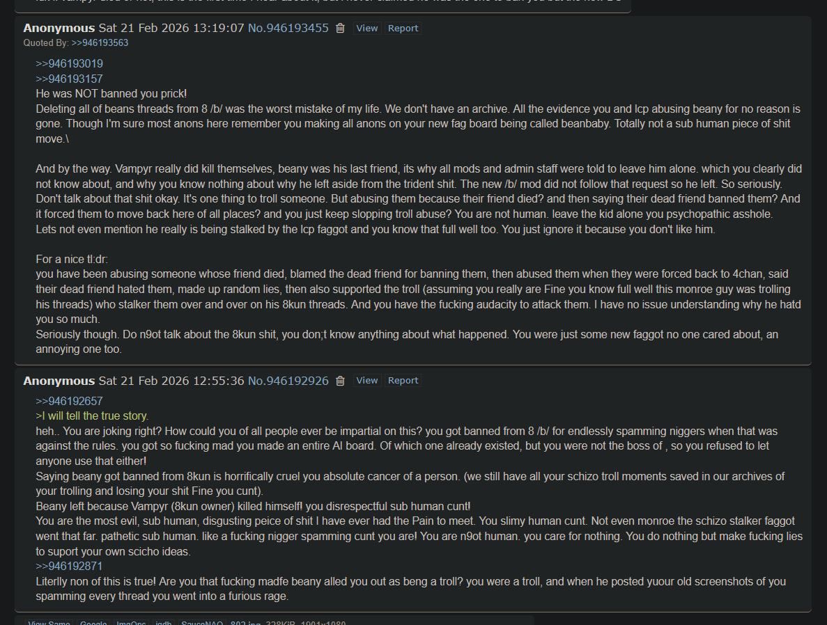 >>947448820Major, major Beany meltdown in the last thread. A little bit spilled over to this one.