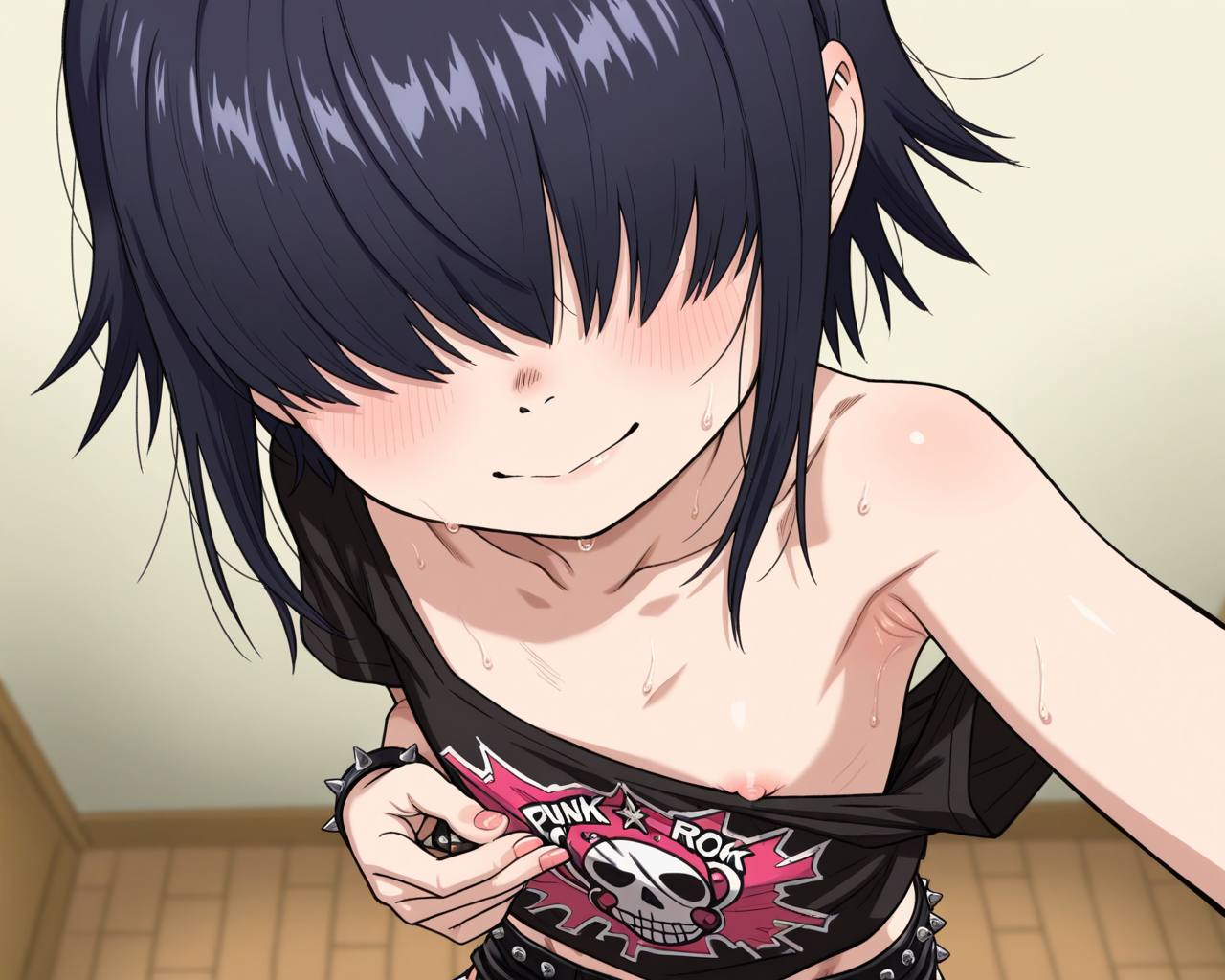 >>947493823Requesting her getting titmogged by a taller, fitter, big tittied punk girl like her....maybe older sister?