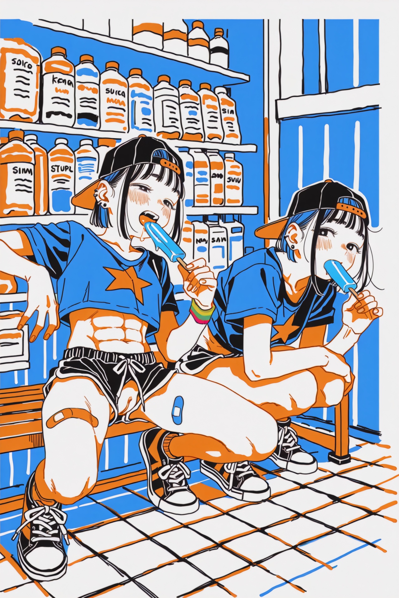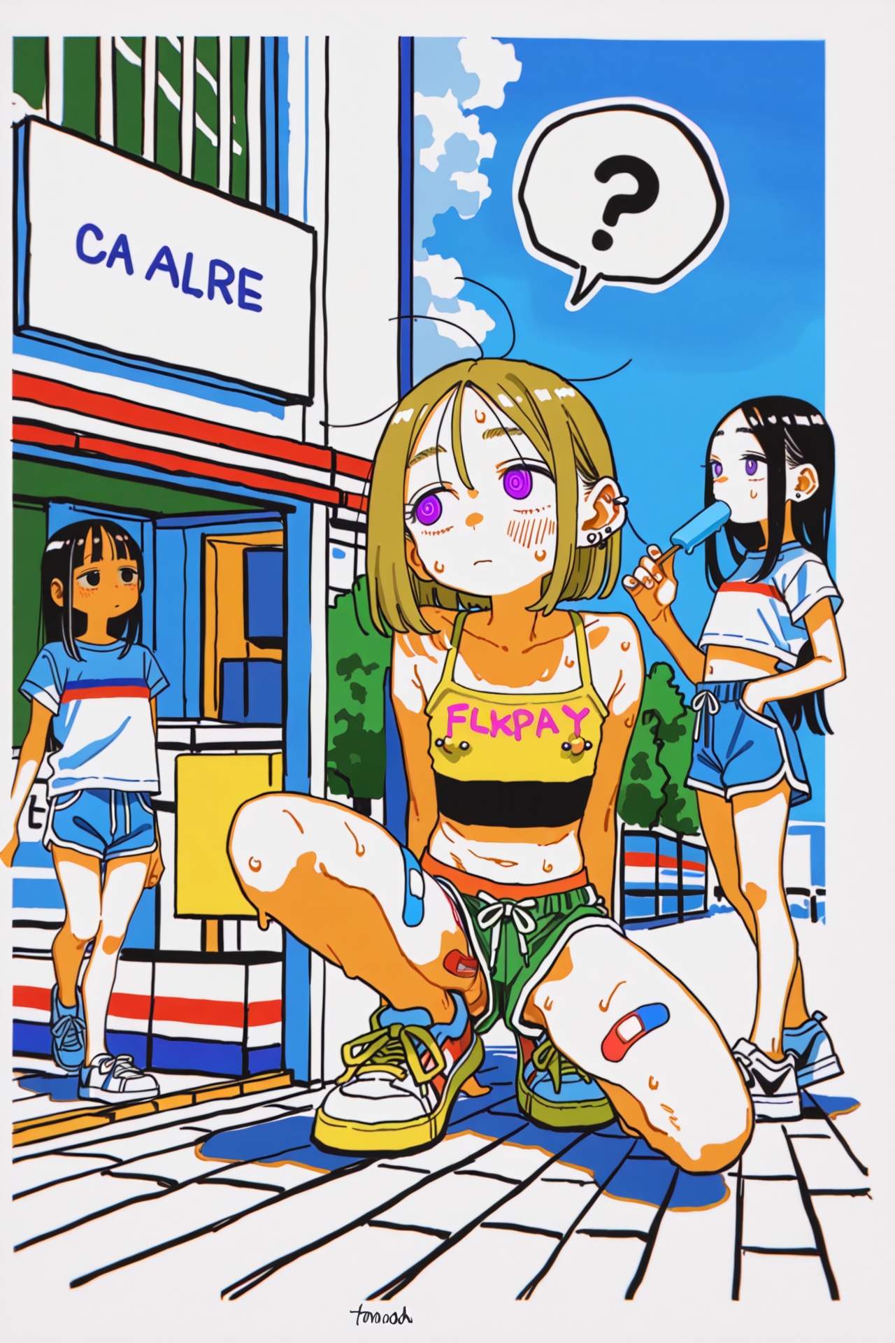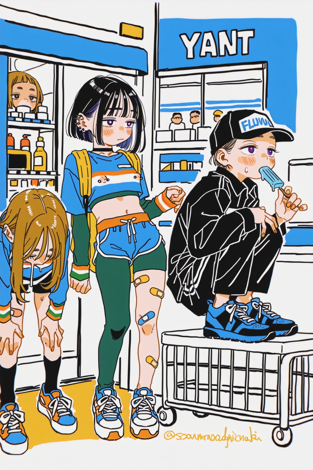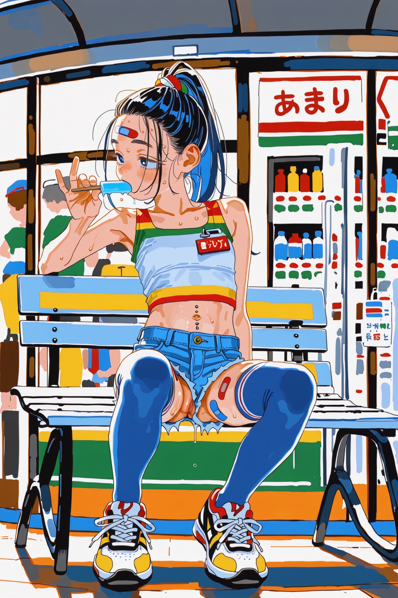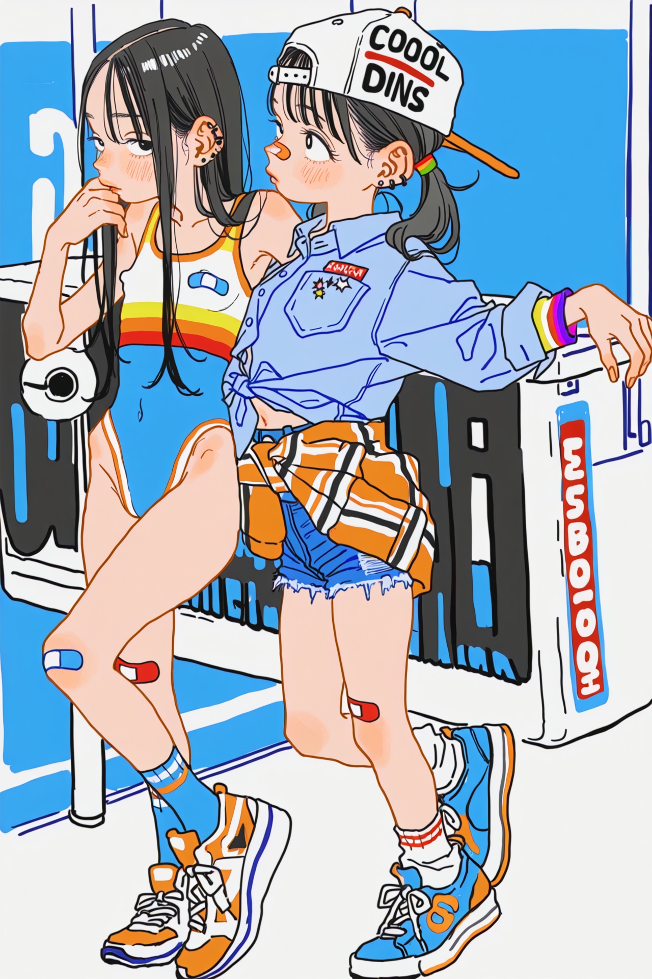 Request for a new theme if anyone is interestedSkater girls, backwards cap, minimal piercings but you can see a few, slim athletic builds, crop tops, multicolored band aids on their thighs and face, cool sneakers, either denim shirts, spats or dolphin shorts, either just showing their loli bellies, having a nipple sip or squatting/sitting and accidentally flashing her pussy