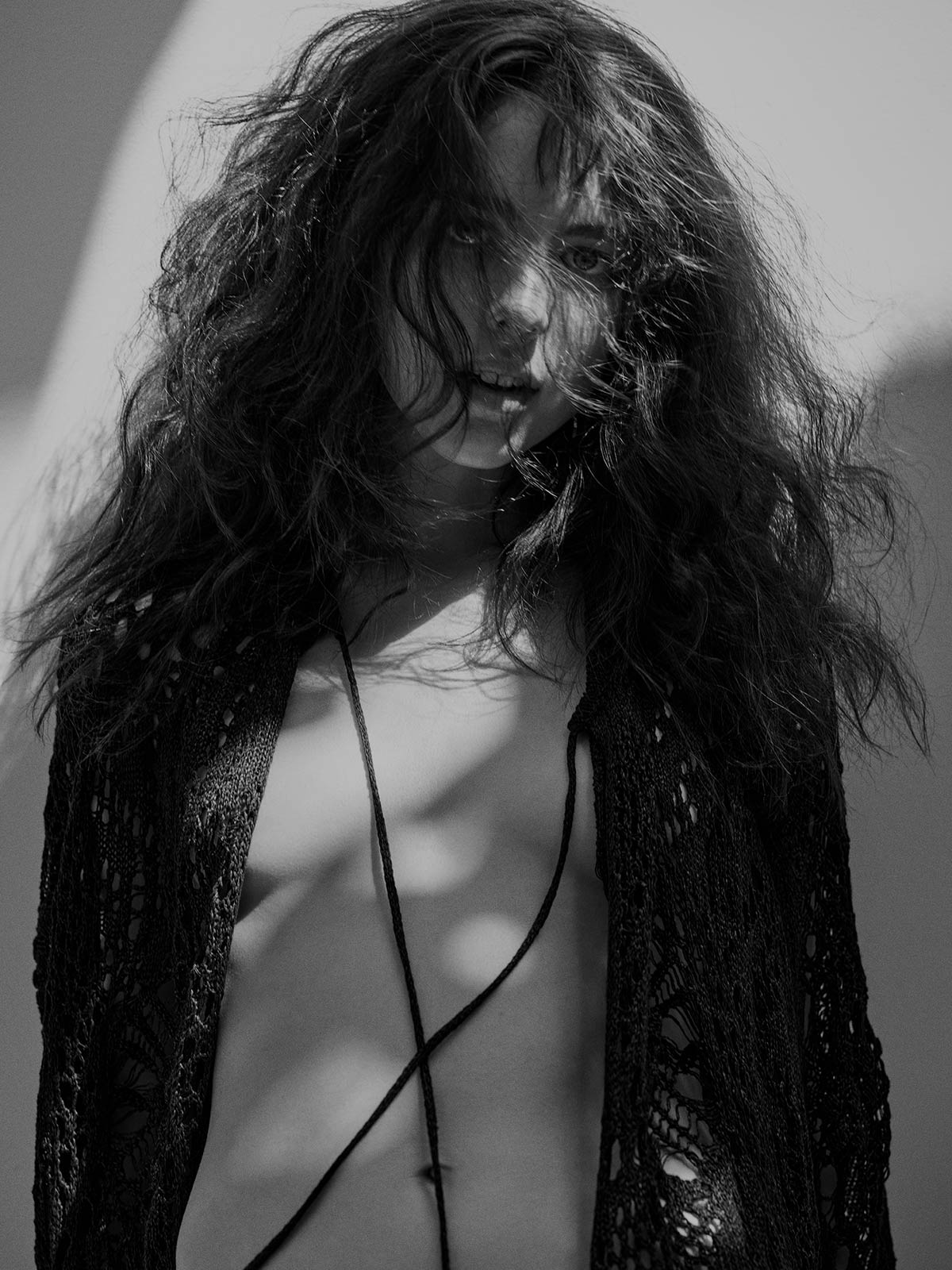 Underneath this sheet, she is nude.