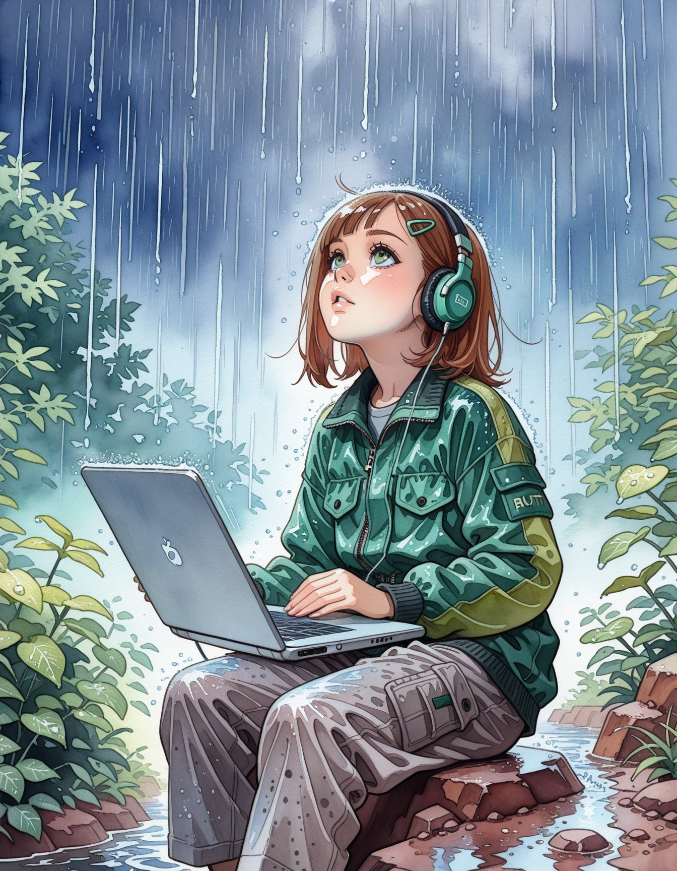 Can someone make her a red head with firey orange/reddish eyes, with wolf boy having same color scheme please?