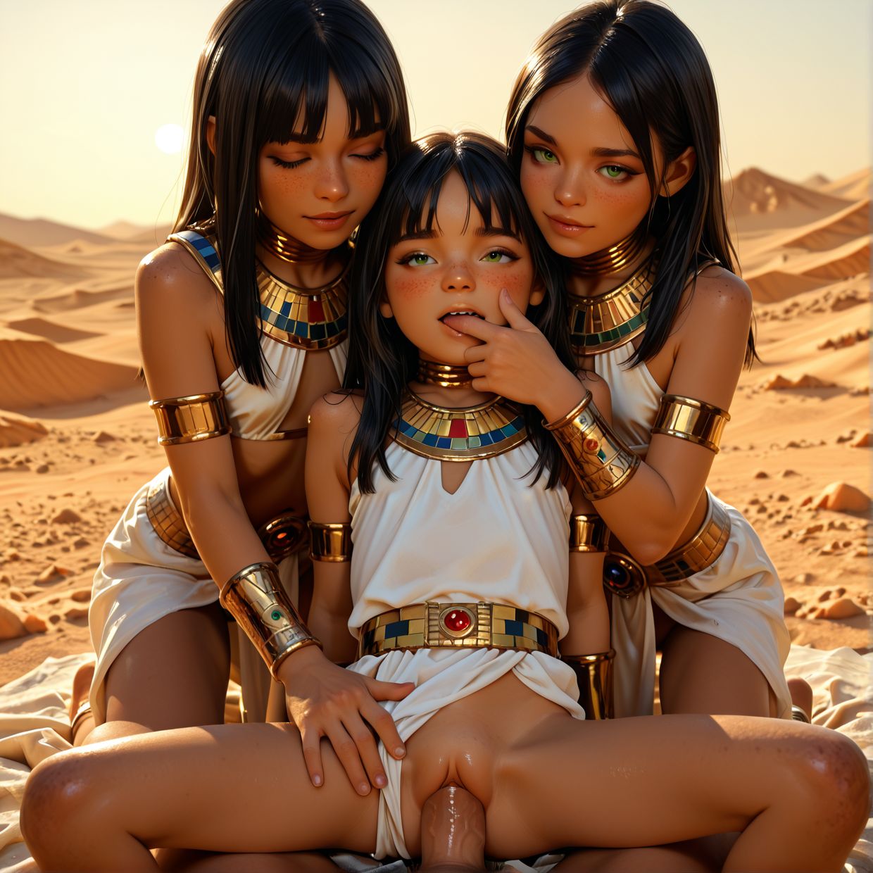 >>947751529Oh hell yeah. Asher did a piece like this once.Two bronze age teen girls beside a slightly younger pregnant girl, they're kinda comforting/preparing/restraining her.If there were subsequent pieces, I like to imagine a teen god-king was about to step in to "infuse her with more seed to grow the child".