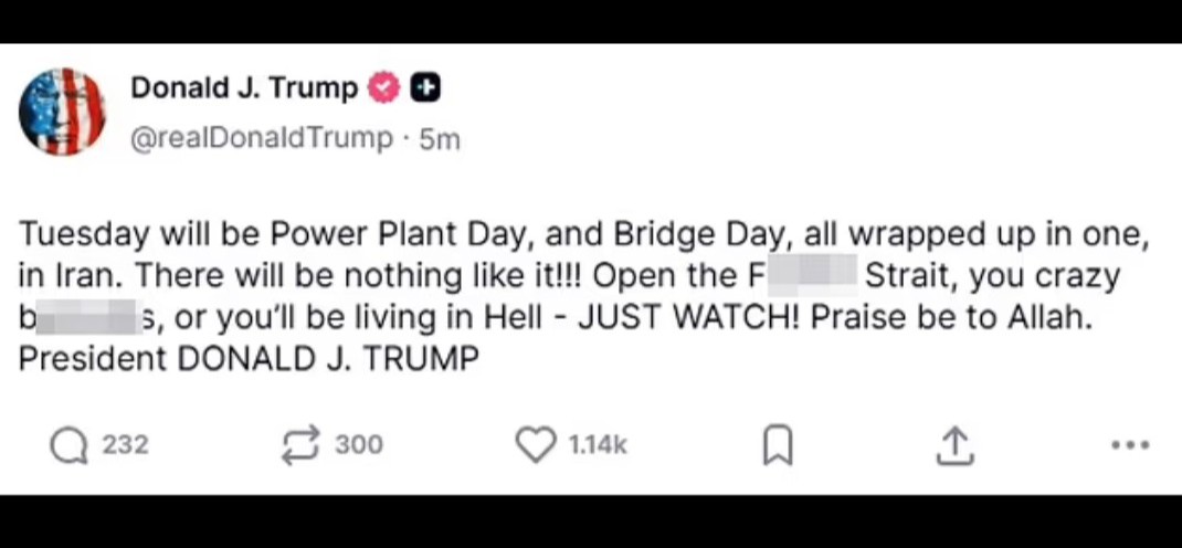 Today is Iran's last chance to open the strait of Hormuz and make a deal. If they don't, they'll be sorry tomorrow.