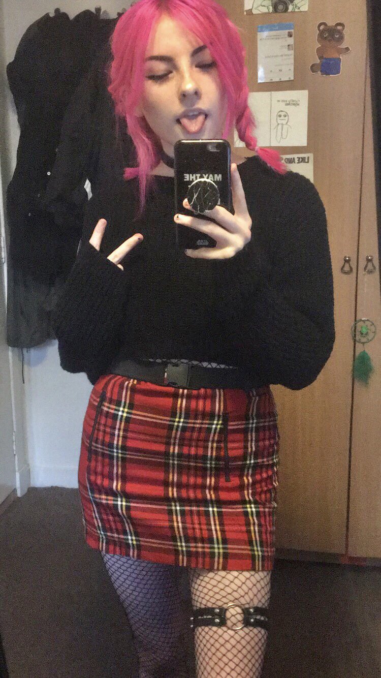 Pink haired brat knows you want to peak up her skirt