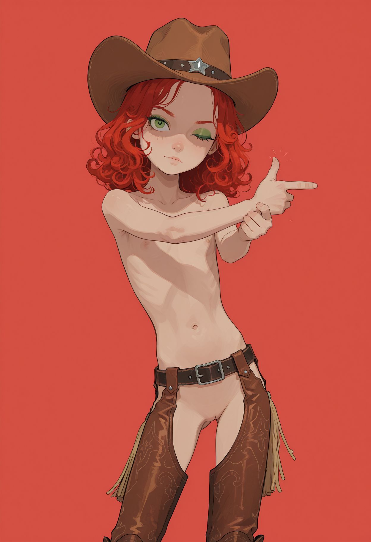 >>947771547>>947771445Cute redhead Loli! Can we see some closeup gens of her exposed sweaty armpits? Her flat chest and skinny torso is amazing I love both of these outfits you gave her :]