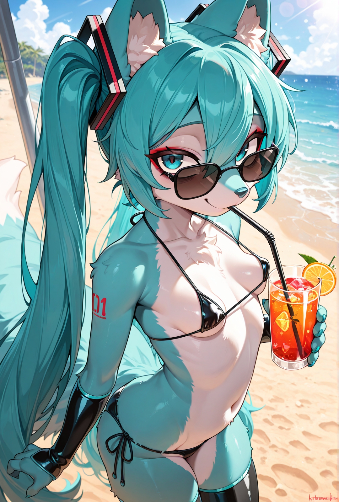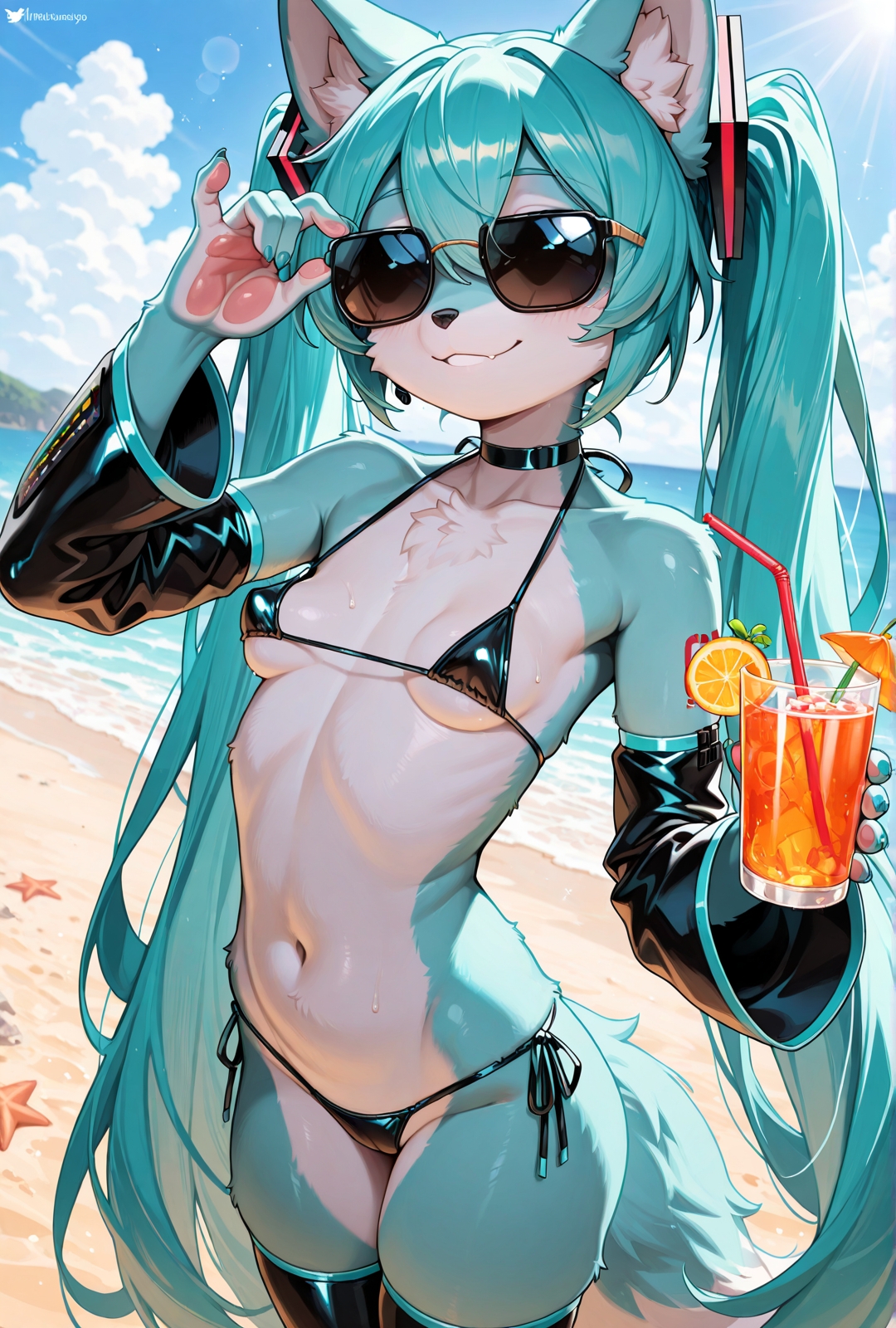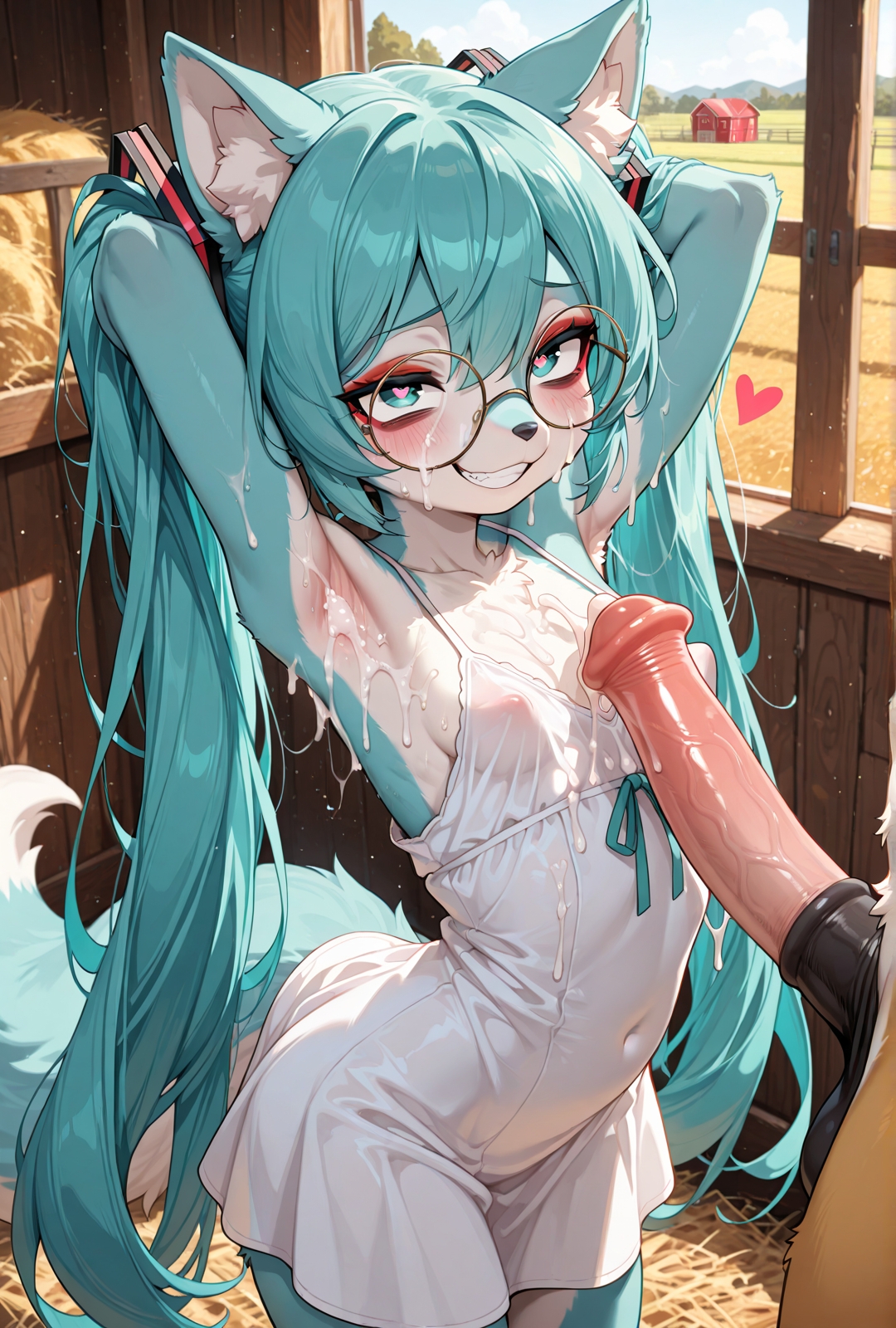 >>947771754Hottt! Can you make some more of these? Can she lick and stroke it and get excessive cum all over herself? Your furry Miku has a perfect petite frame and smol perky bobbas:)