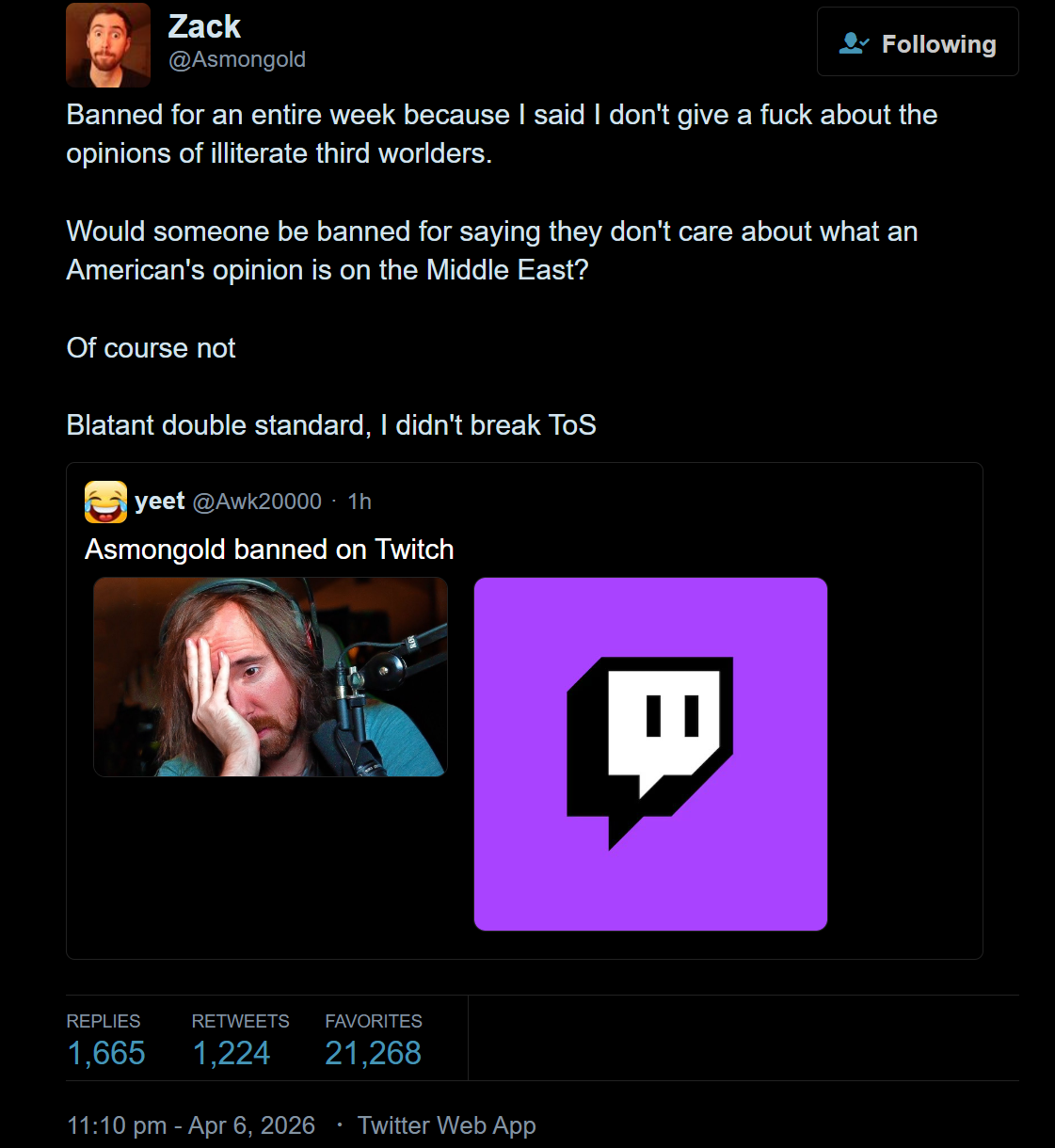 Why did twitch silence Asmon on a potentially historic day? Is there a reason he was banned?
