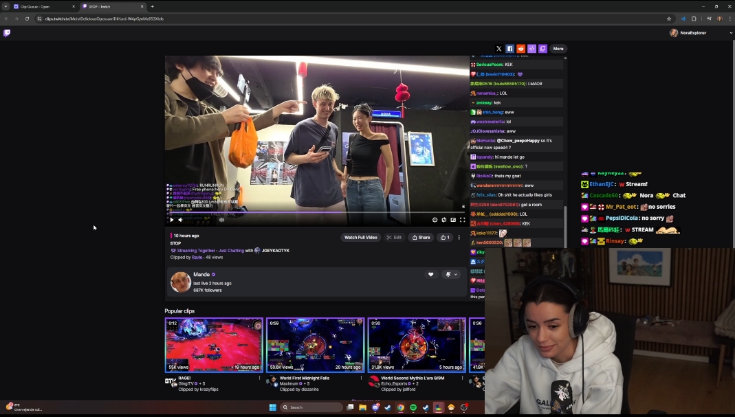 >>947809655I hope his girl won't see these clips because she will actually tell him to stop streaming with Nora lmao
