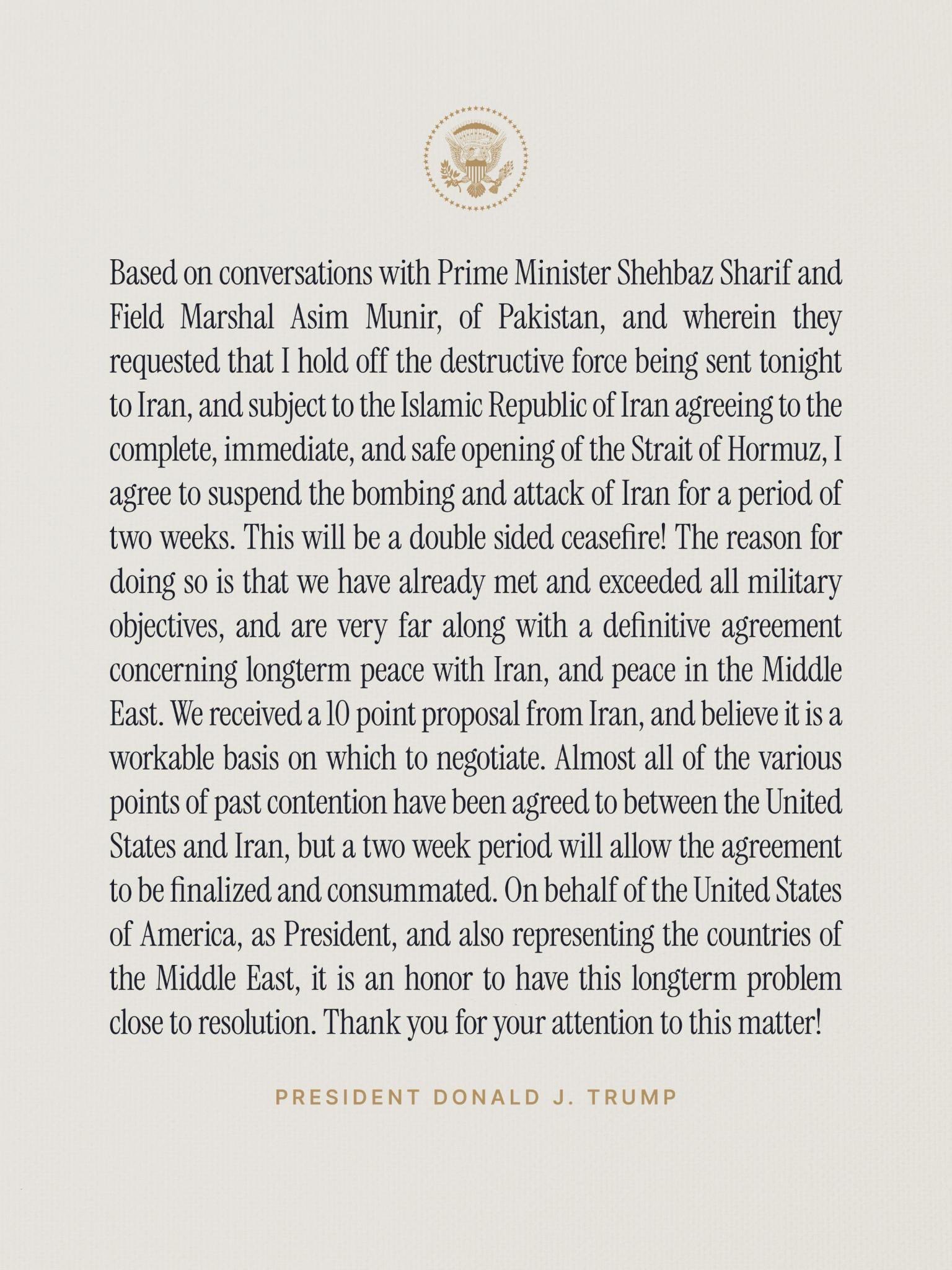 >>947820485it's only trump that made a statement so farand he said the truce is on only if the strait is openedIran hasn't released a statement yet