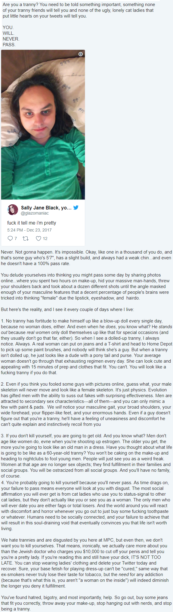 I've never met a bunch of people more obsessed with trannies on here.Why is that ?