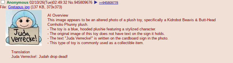 >>947830855The headache Shitler had when he an heroed? Or the headache antisemitism producing radical EGALITARIANISM creates in the system ? Like when Amanda gets pounded so hard with Rapetone in the butt and you watch it with your own simplistic googly eyeZ?That's a double migraine!.Cause she's getting MEGA pounded alright . Look what you produce ,you pagan vermin. And you're gonna try to convince me it's not your anti-Semitism but you're THE genocidal and all your true intentions for the Jews are thus evealed in Judeo-Christian Western CIVILIZATION Around the Mustache shelf or the Indo-Aryan , connection /blood flow to the reddest leather neck.Blood pounding right in the prefrontal cortex. Now that's a double gang banging migraine . For whom ,I wonder . Jews just go full physics and call it SUPER COLLIDERLELGnomesayinz swastikkaniggLet?