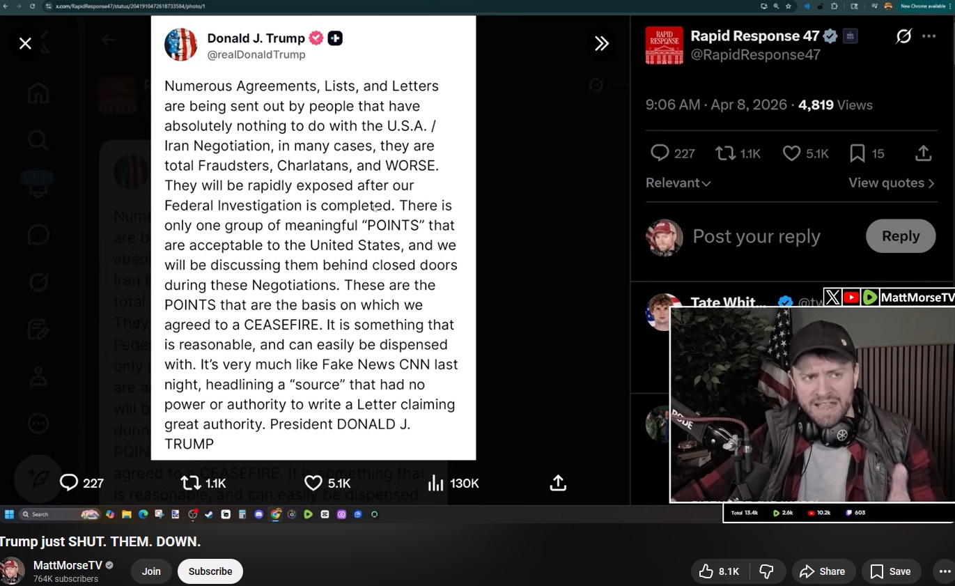>>947856981in b4 trump declares ceasefire tomorow under exact bullet points listed a few days prior XD