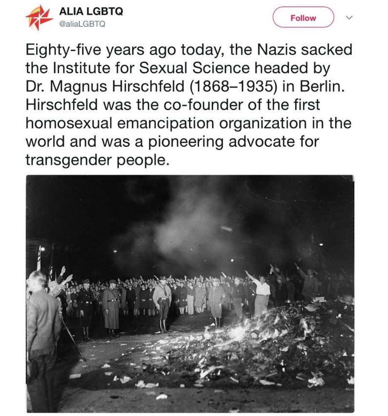 They always call Nazis book burners.They never want to talk about what books were burned.