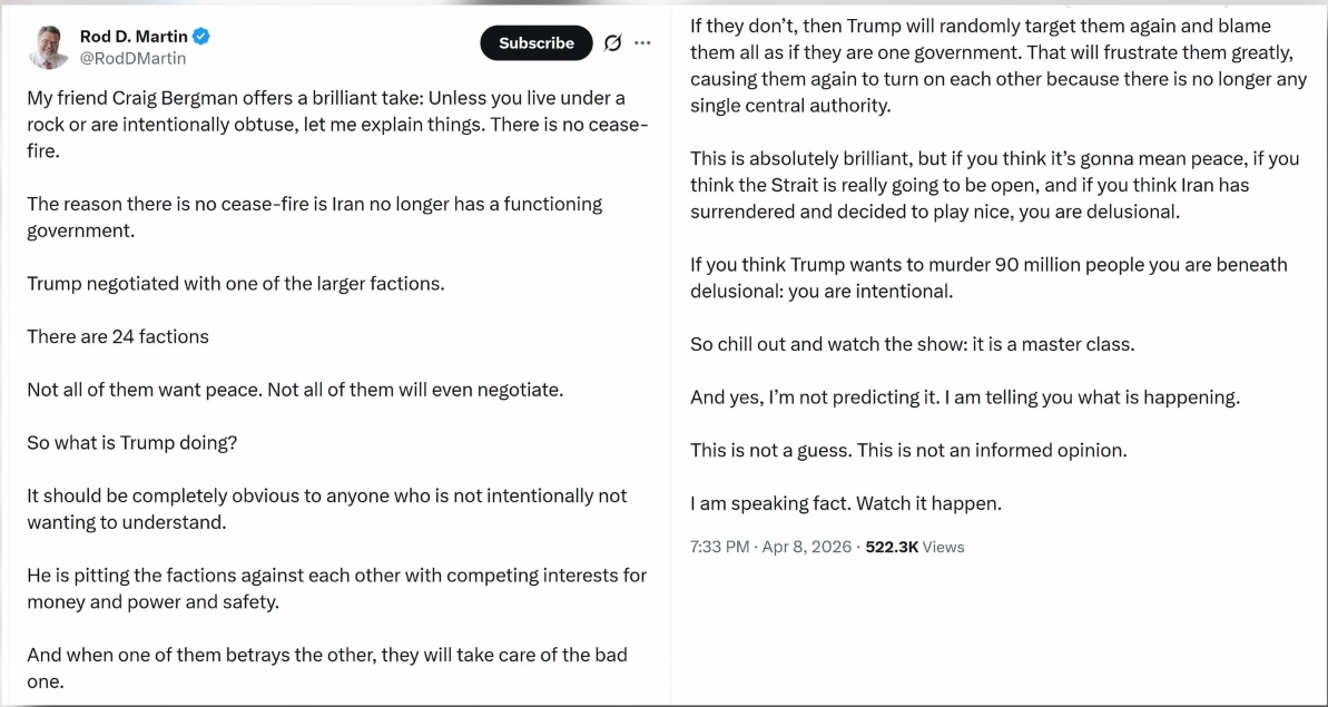 Funny thing is Trump obviously didn't read the ceasefire proposal, he already called Iran "a great nation", which is somewhat the first point, and also ended sanctions on Iranian oil.Time for fulfilling the second point..