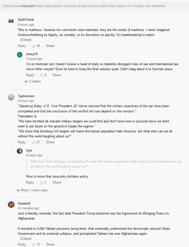 >>947877592the nuclear holocaust threat?Could it be that he's jelous that Persia is a cizilization and he isn't even civilized, so he threatened to erase it?Problem is he had already purged the military, 8 generals which would have stopped him using tactical nukes - so it's worth reflecting on what happened For sure US servicemen are fed up (img related, the TWZ rundown report is worth reading, too), and half of US citizens call for his impeachment