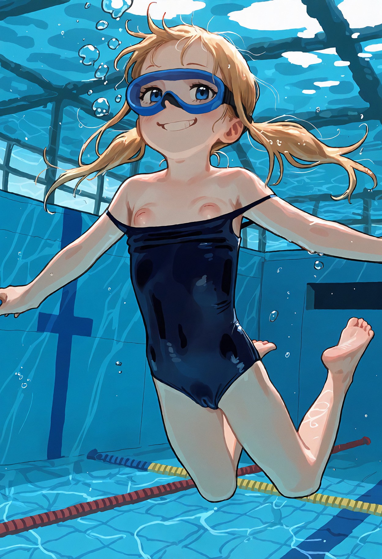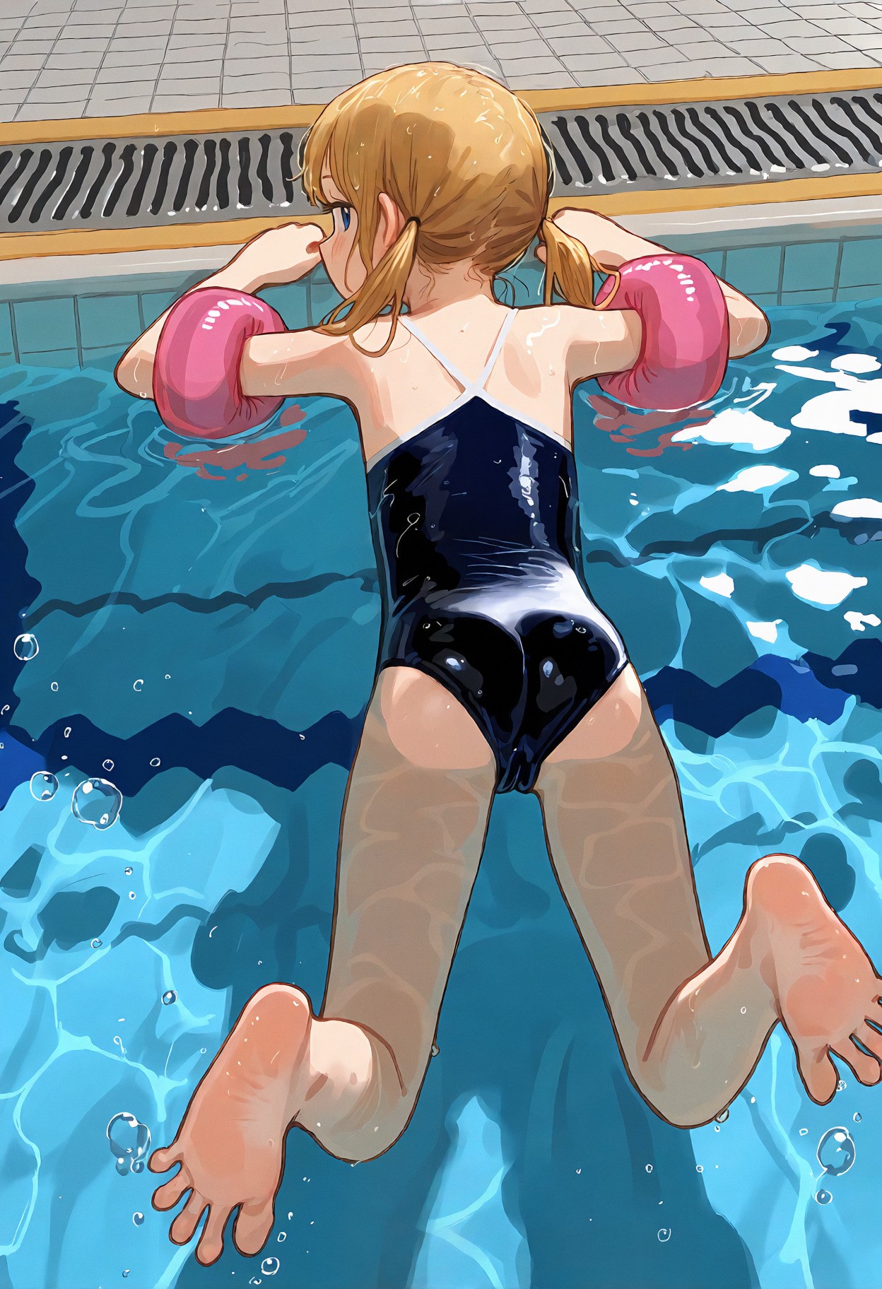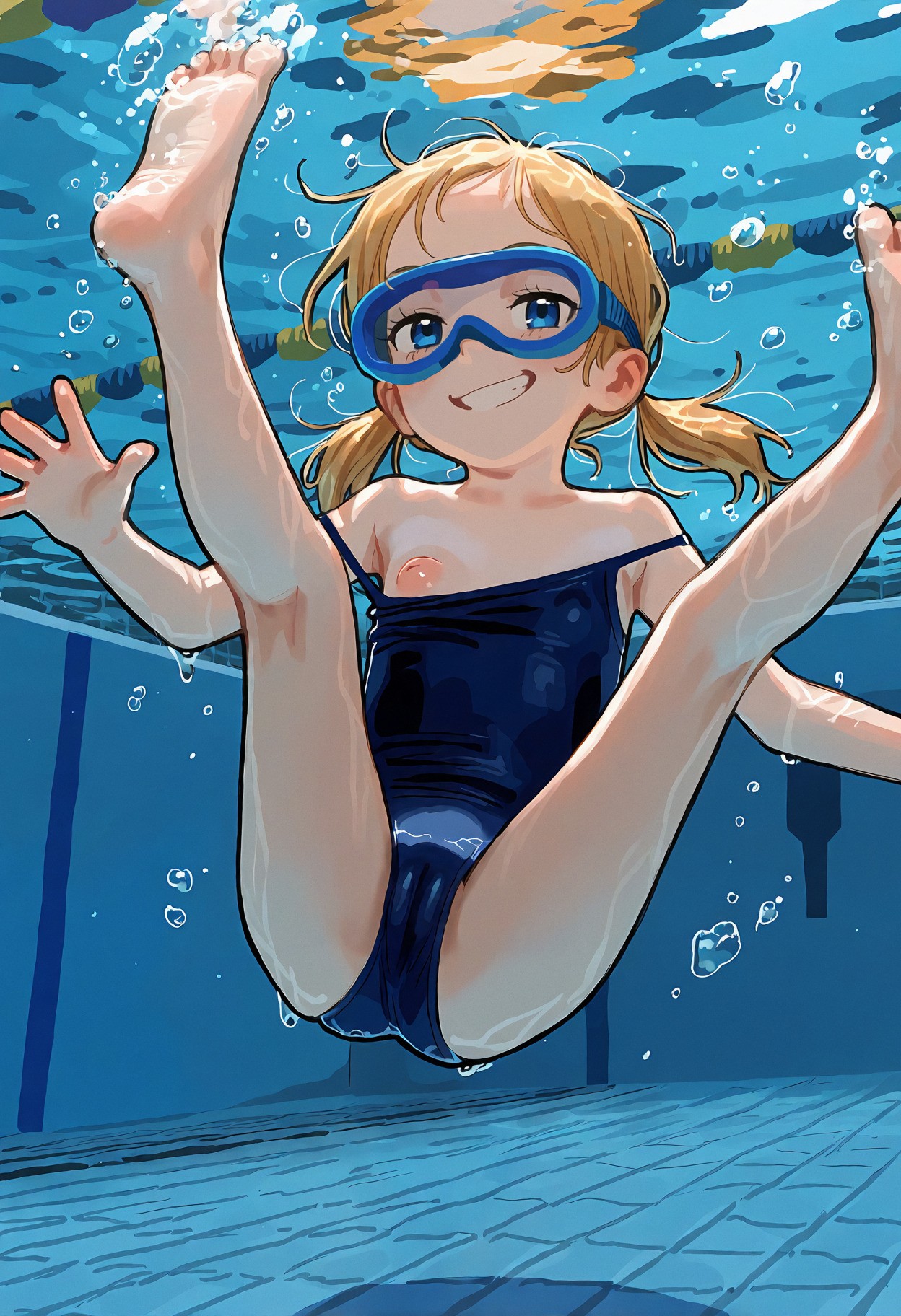 >>947884541>>947884690un-bee-lievable <3 >>947884747it's pretty coherent and forgiving, just give it natural language or booru tagsmasterpiece, best quality, newest, (score_9, score_8, score_7:0.25),nsfw, digital anime illustration, @aruhshurastyle, cutepussy,@luimiart, @pantsu-ripper, @khyle., @kantai_collection, (thick_outlines:1.1), bold lines, 1girl, loli, child, aged_down, blonde_hair, blue_eyes, swept_bangs, sidelocks, low_twintails, short_twintails, slim_legs, skinny, she is very petite with a flat chest, skin_tight, covered_navel, cameltoe, puffy pussy covered,indoors, swimming pool, olympic size pool,pink one-piece_swimsuit, spaghetti_strap, (swimsuit_pull:1.1), covered_nipples, underwater, feet in water, foot_focus, girl is sitting poolside with her feet in the water, the view is from underwater with a focus on her feet,her toes are spread,smug grin, looking_at_viewer, from_below,
