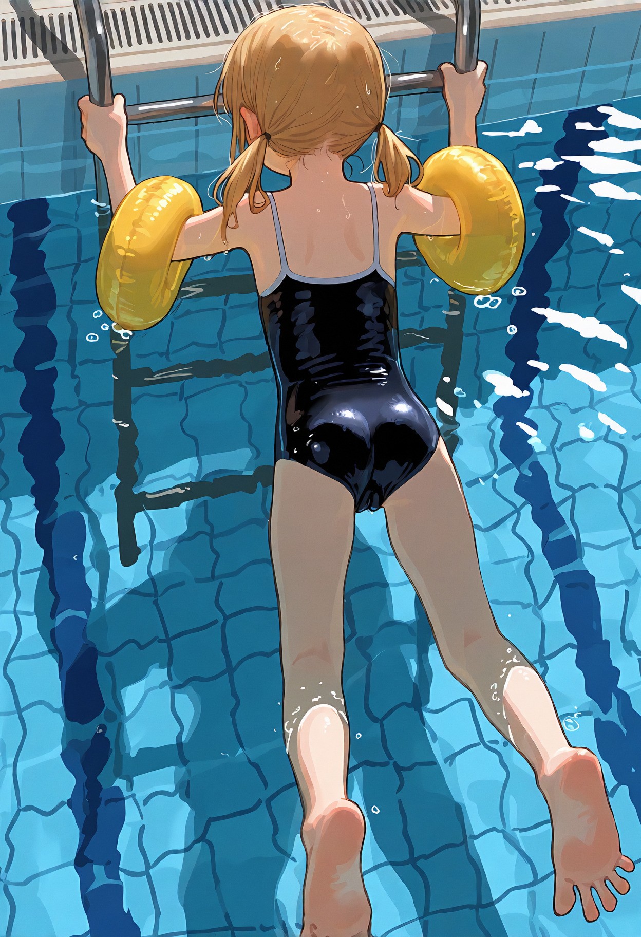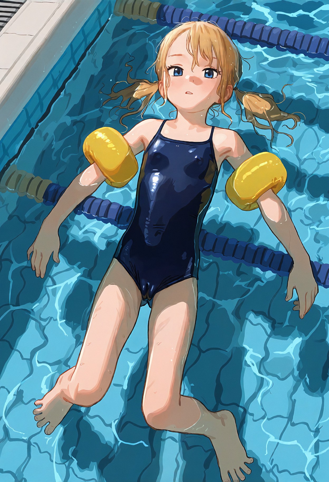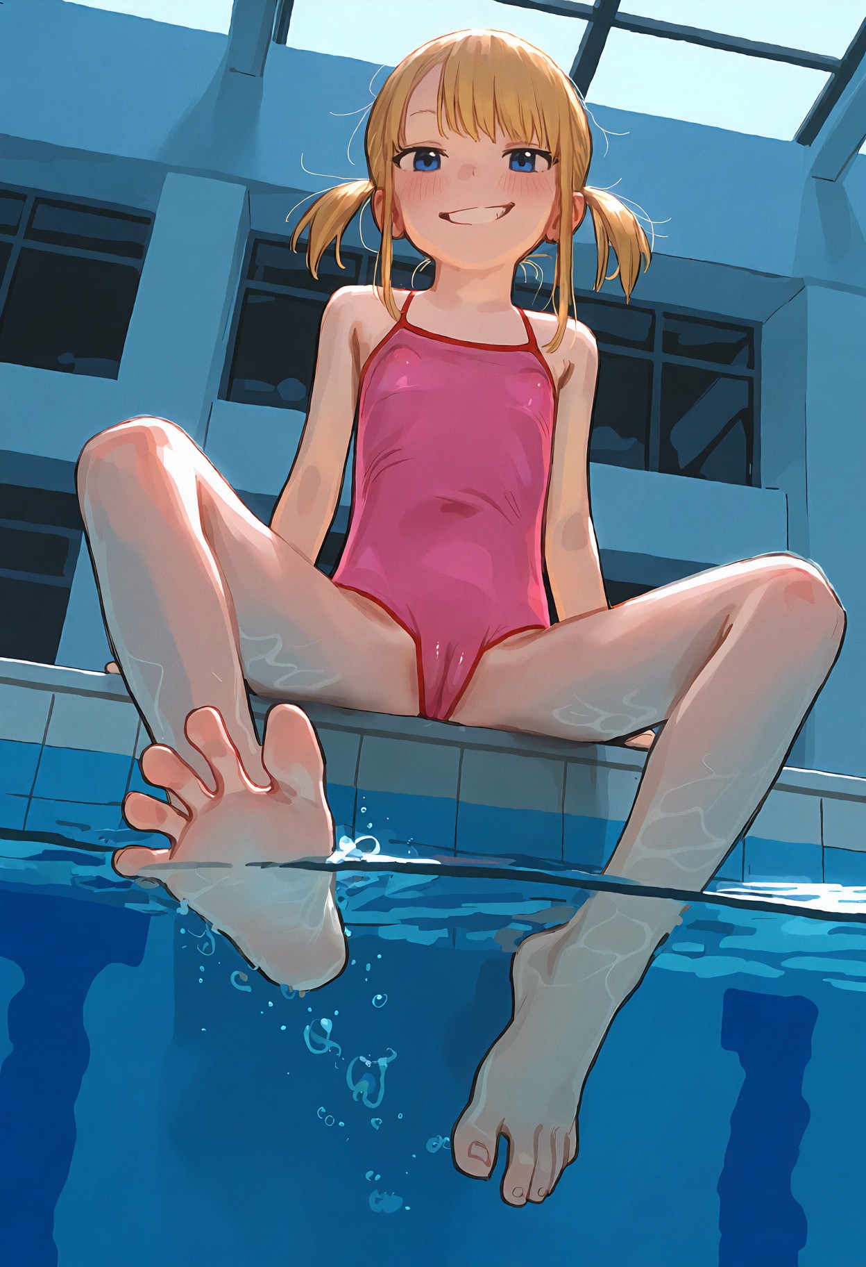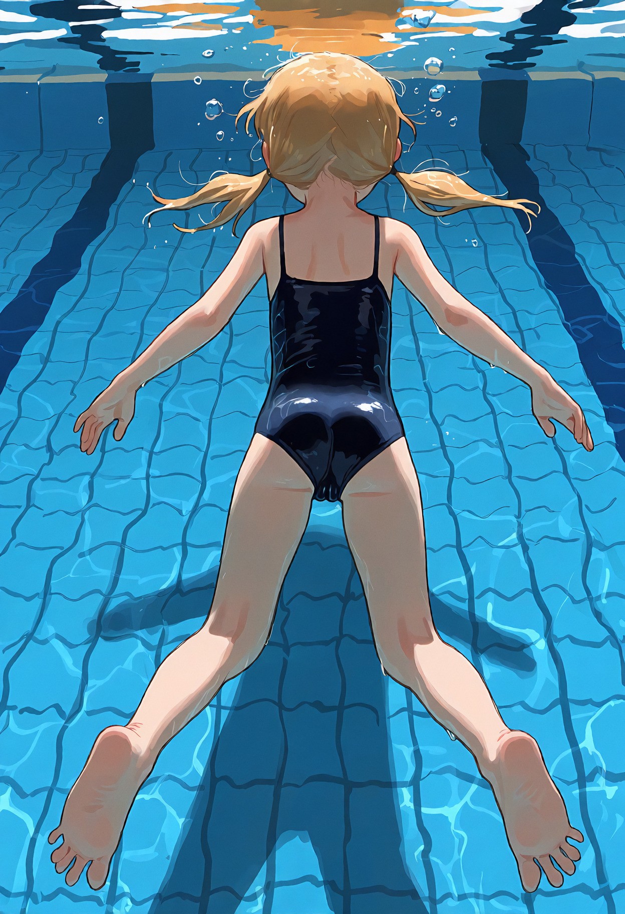 >>947884541>>947884690un-bee-lievable <3 >>947884747it's pretty coherent and forgiving, just give it natural language or booru tagsmasterpiece, best quality, newest, (score_9, score_8, score_7:0.25),nsfw, digital anime illustration, @aruhshurastyle, cutepussy,@luimiart, @pantsu-ripper, @khyle., @kantai_collection, (thick_outlines:1.1), bold lines, 1girl, loli, child, aged_down, blonde_hair, blue_eyes, swept_bangs, sidelocks, low_twintails, short_twintails, slim_legs, skinny, she is very petite with a flat chest, skin_tight, covered_navel, cameltoe, puffy pussy covered,indoors, swimming pool, olympic size pool,pink one-piece_swimsuit, spaghetti_strap, (swimsuit_pull:1.1), covered_nipples, underwater, feet in water, foot_focus, girl is sitting poolside with her feet in the water, the view is from underwater with a focus on her feet,her toes are spread,smug grin, looking_at_viewer, from_below,