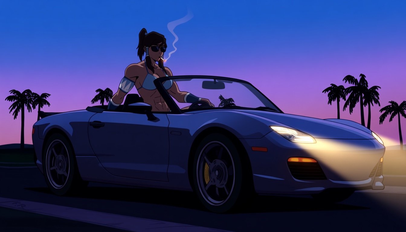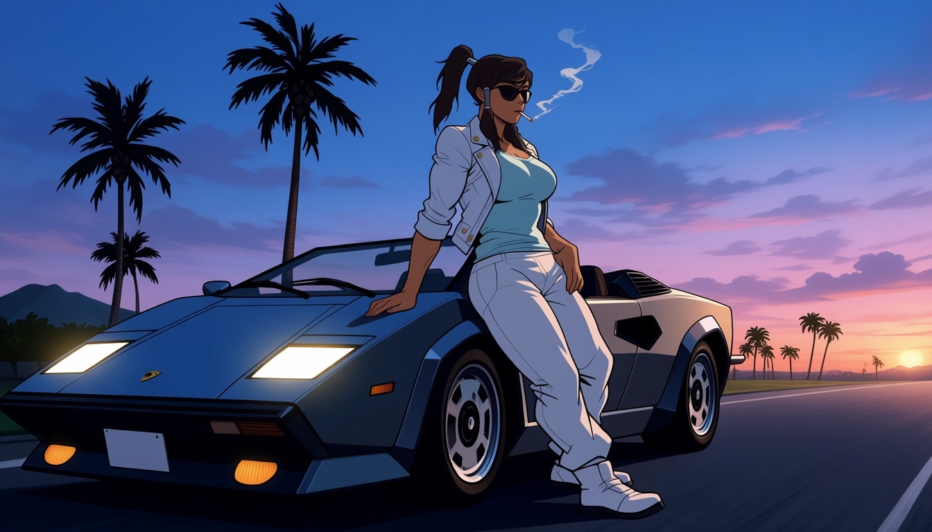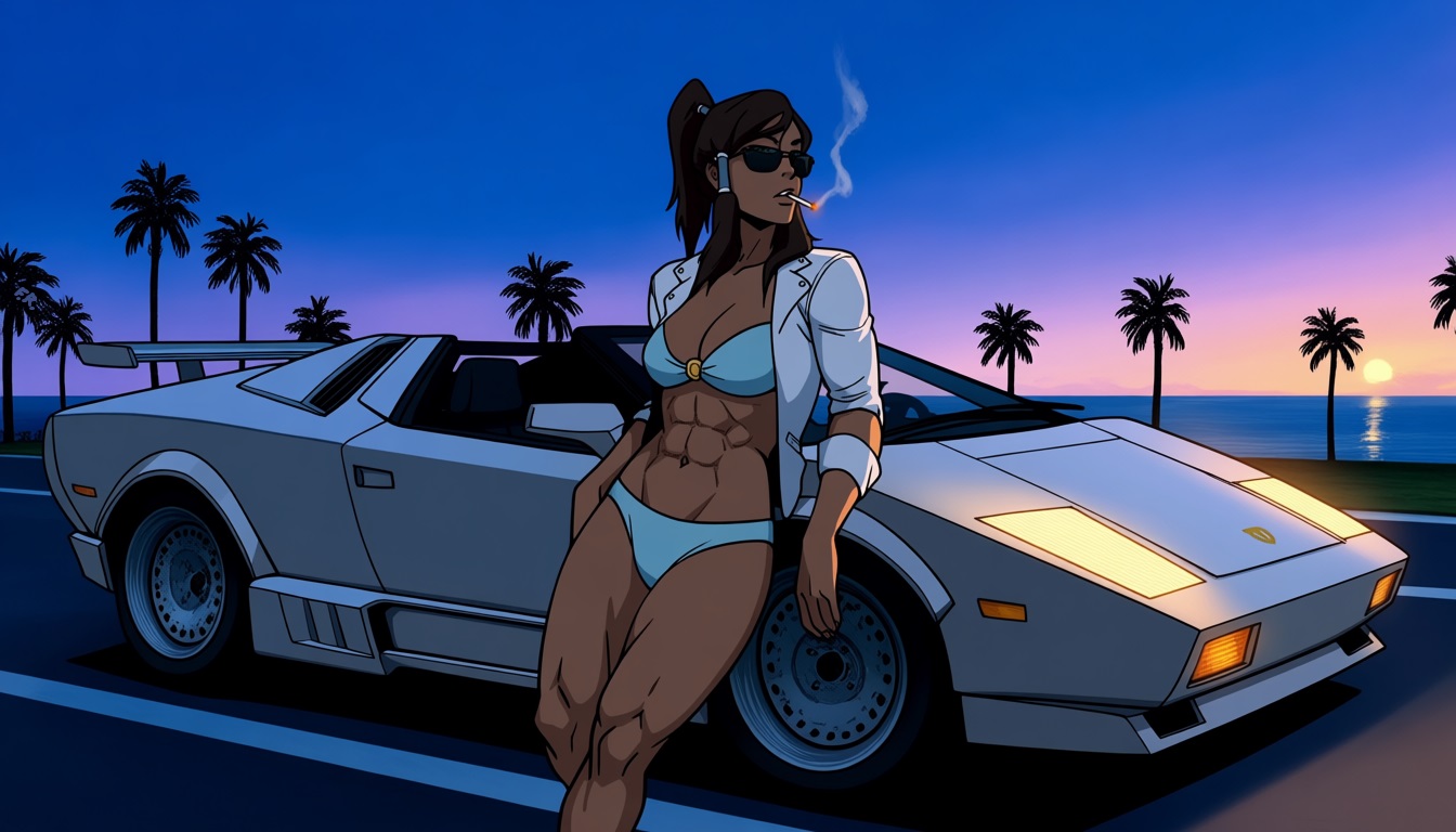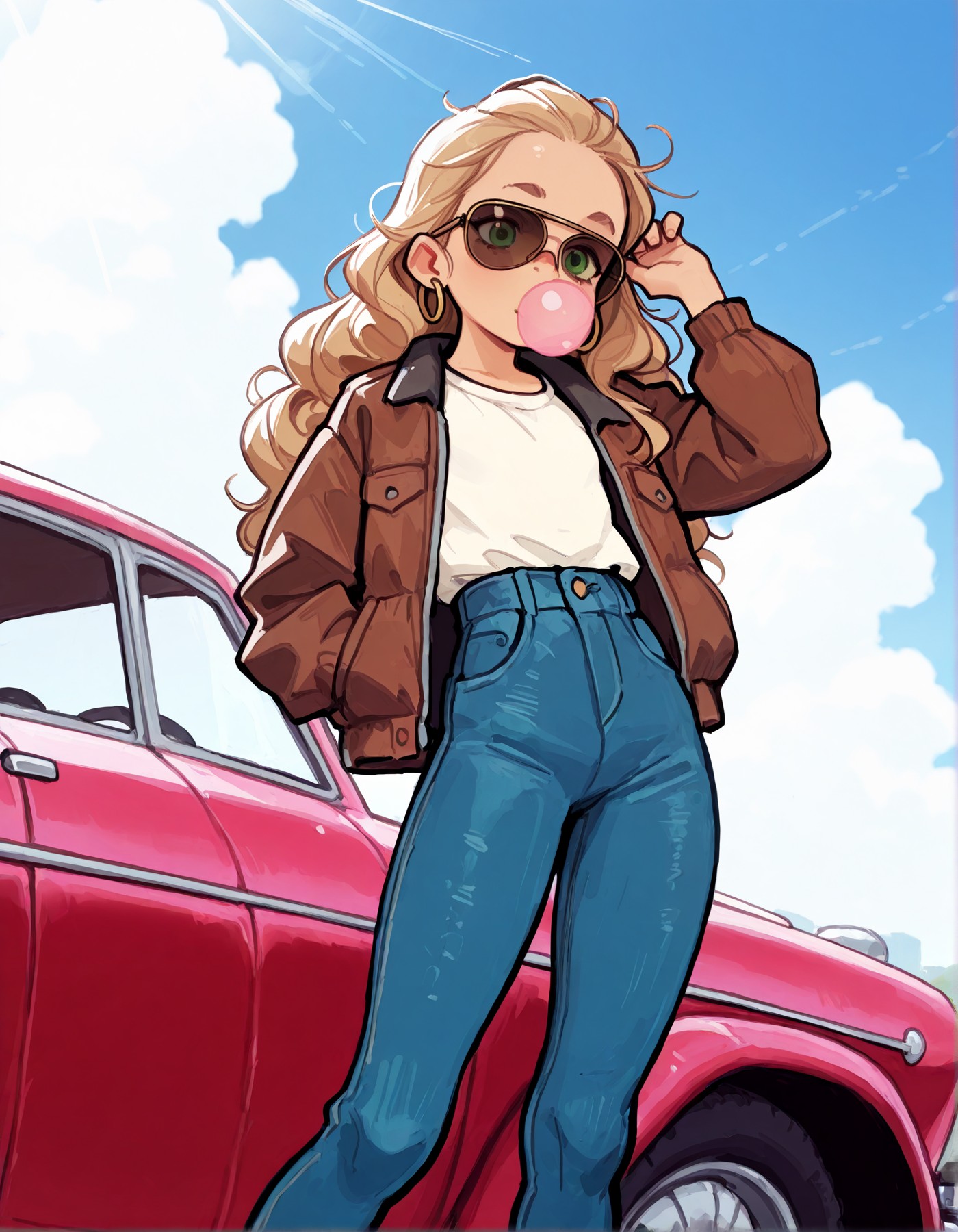 >>94791215480's retro style cute girl leaning against a car of your choice!