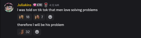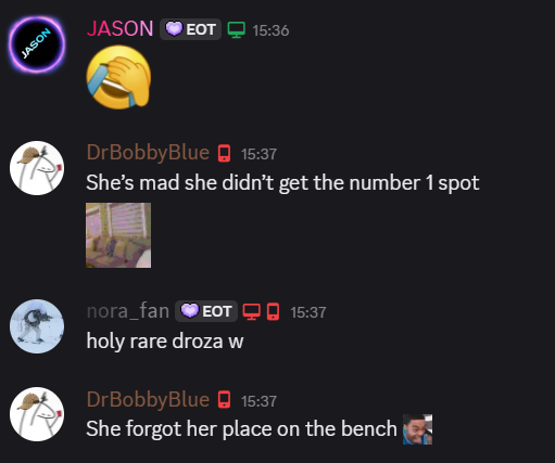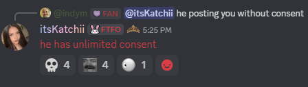 >>947918796I know exactly who it is too lmao. They were rapid fire sending shit like this in julias discord yesterday in the hopes of starting drama. They're like oh no dont worry arther can take it his discord has shit on him way worse before. Like bro you're actively instigating drama.