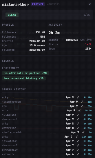 >>947918925a little logic can filter out chatterino>he would have the same watch time as the streamer if it was a chatterino client