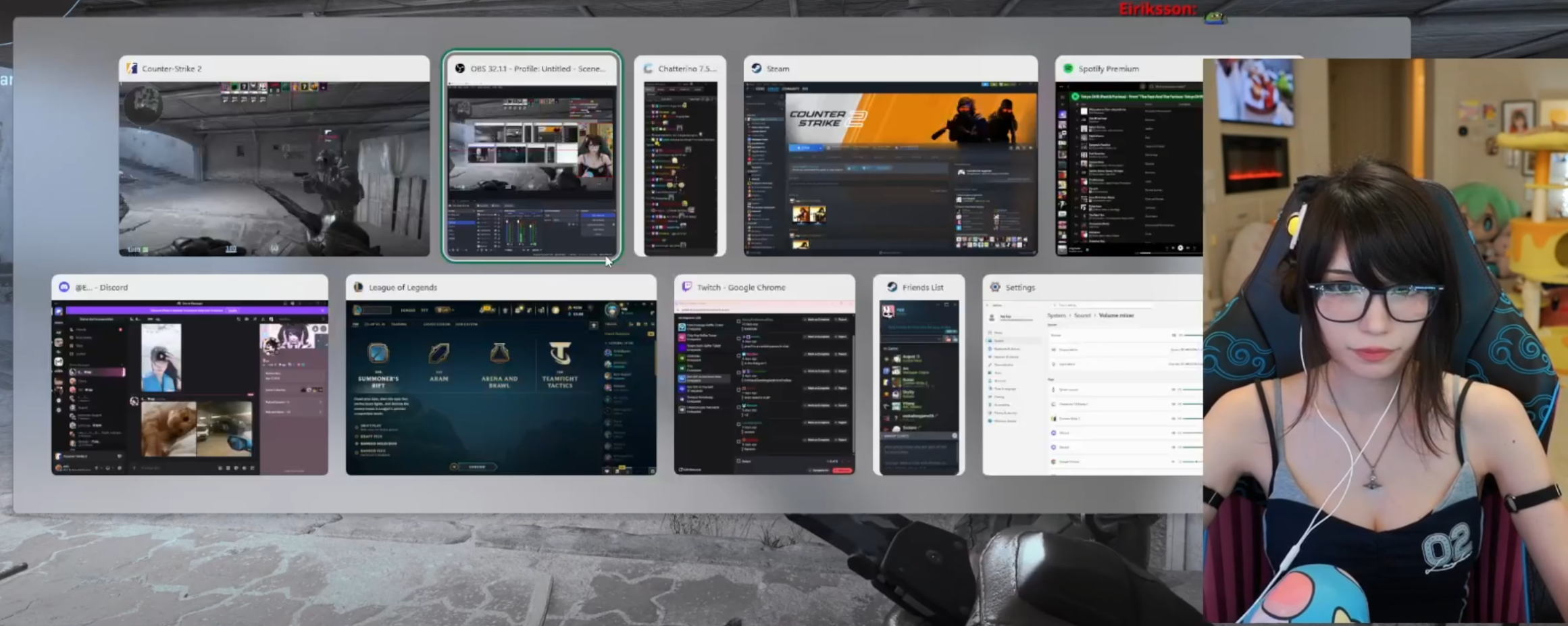 she keeps looking at her other monitor waiting for a message from her main discord