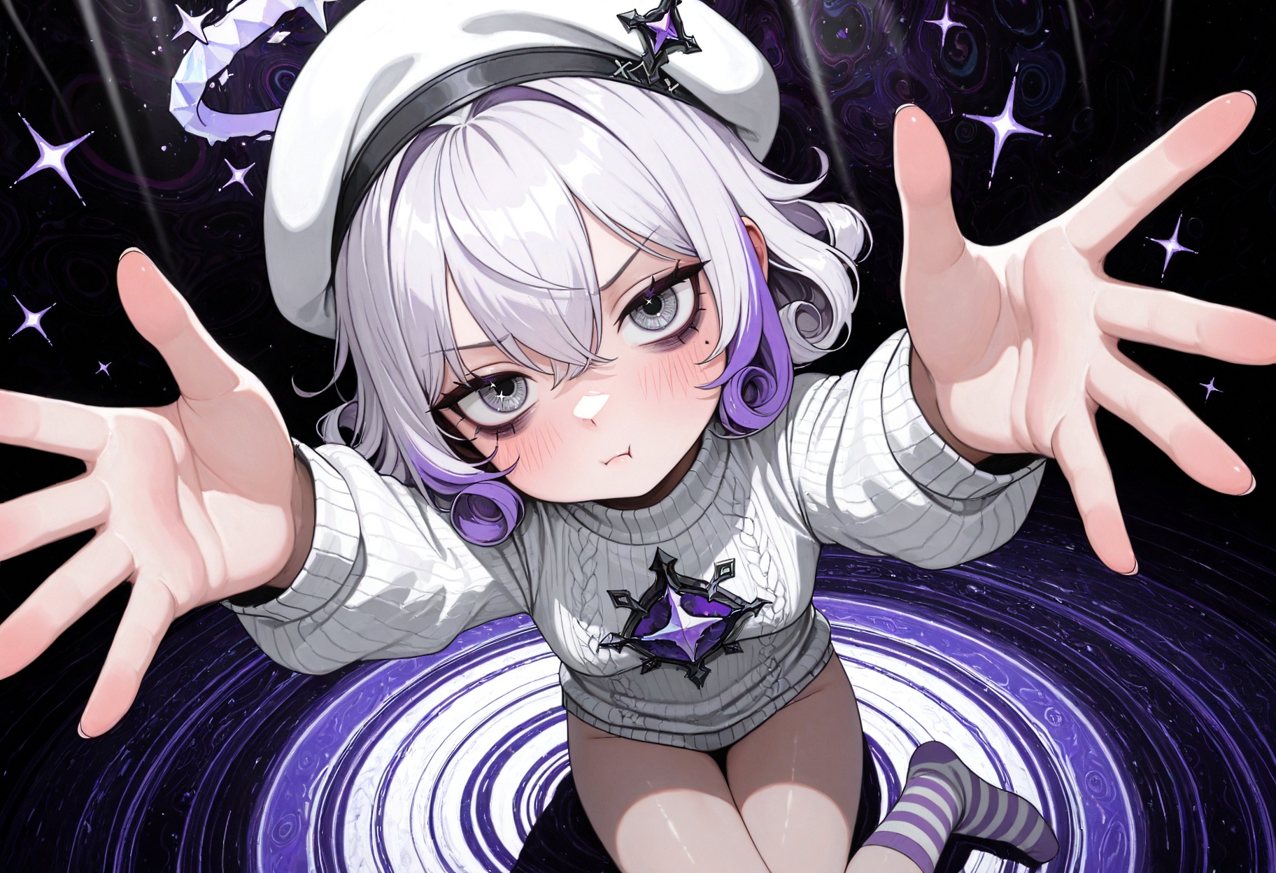 + prompts: masterpiece, best quality, very aesthetic, absurdres, high resolution, ultra detailed, perfect details, marcie, female, puddle, dog, 1girl, furry, solo, hat, bow, furry female, green eyes, animal ears, tail, dog girl, beret, white hair, smile, naked, small breasts, nipples, 4 toes, thin hourglass body, hourglass body, from behind, hands on knees, ass, looking back, standing