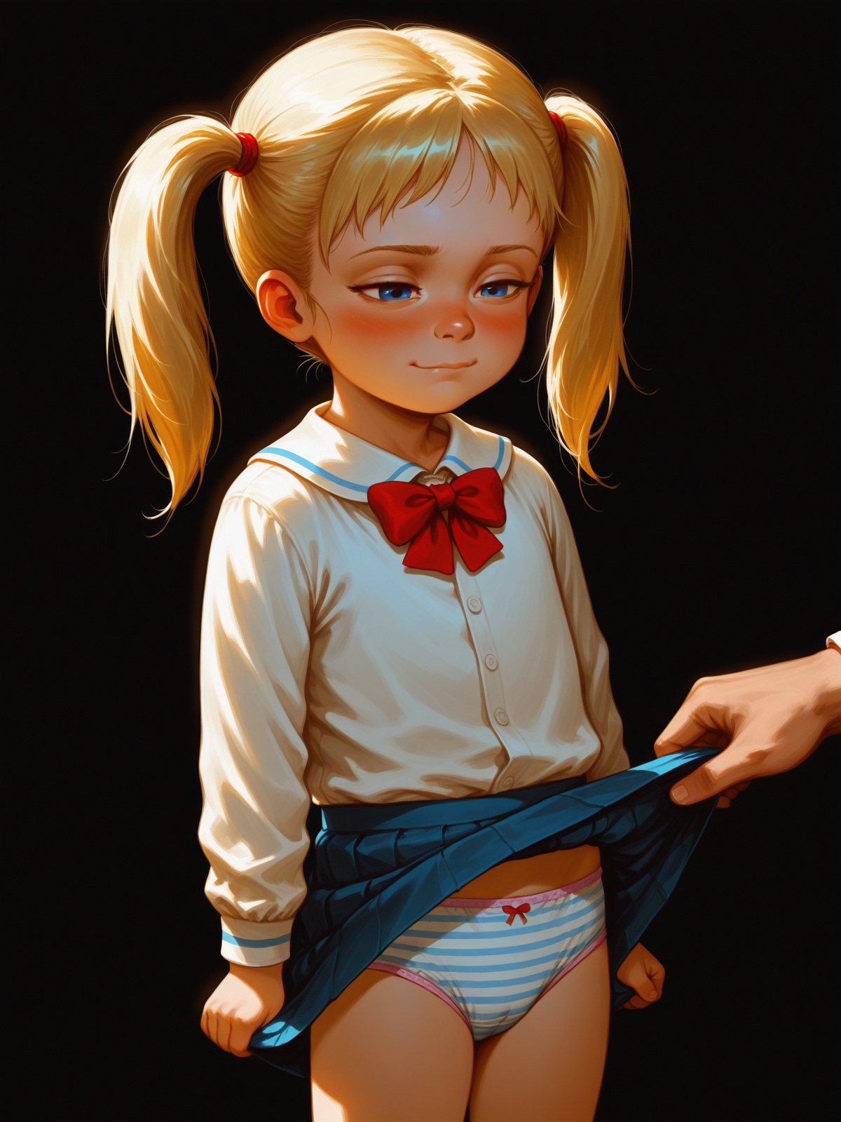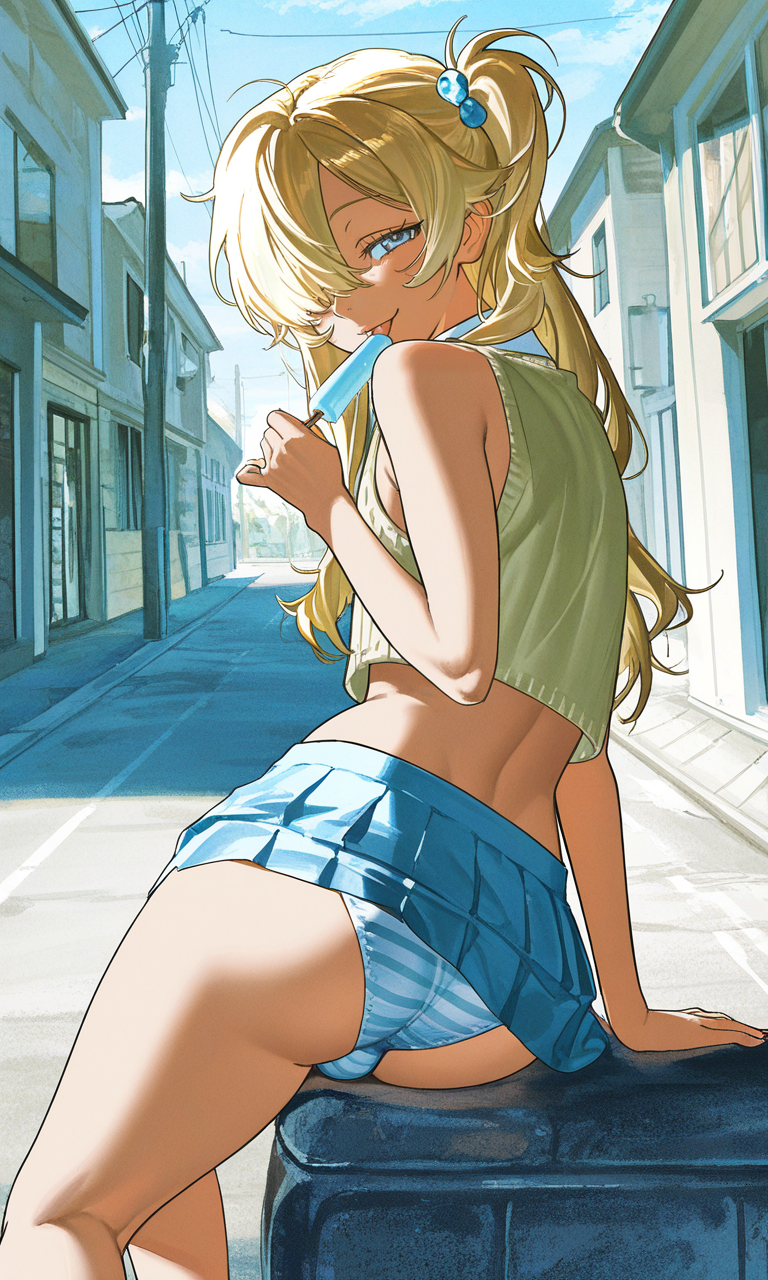Couldn't gen and post it fast enough to reply to the anon in the last thread, so I just made the new thread.Japan really gave a generation of Weeaboos a fetish for blue striped panties, huh?