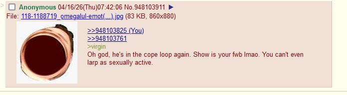 >>948104086>I browse a lot of 4chanVirginity confirmed.