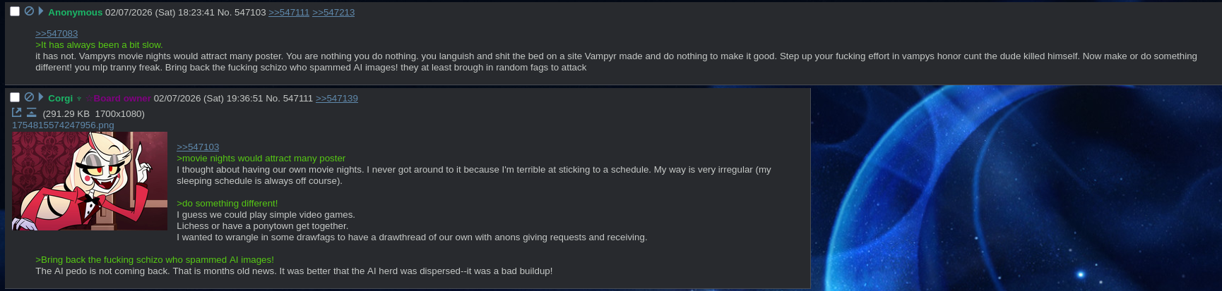 >>948105081I wish screenshot anon was here, he has a whole folder of him going schizo and talking about literally sucking his own dick.