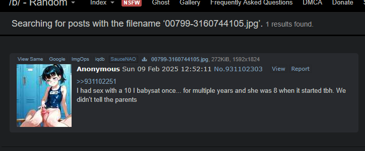 Dunno why I thought today would be different. I've watched monroe fag just rage ban people when he was outed as a cancer fag. Dunno why him seeing his mosted hated rage stage wouold make me immunuit from his stalker cancer.I'll slop back tomorrow. might finish the incest stuff. You guys enjoy the schzio. He will accuse one or two of you as being me for a couple hours>>948105081btw the troll tard you just talked to has posted real child porn on multiple boards and sites. don't be a cuck. realise a monroe spam. Go ahead and ask 8kun mods who spammed child porn for 12 hours to try and get me banned.