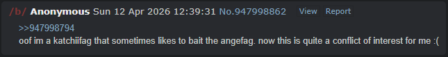 >>948106587>he accidentally outed himself as a katchiifaghow do you figure