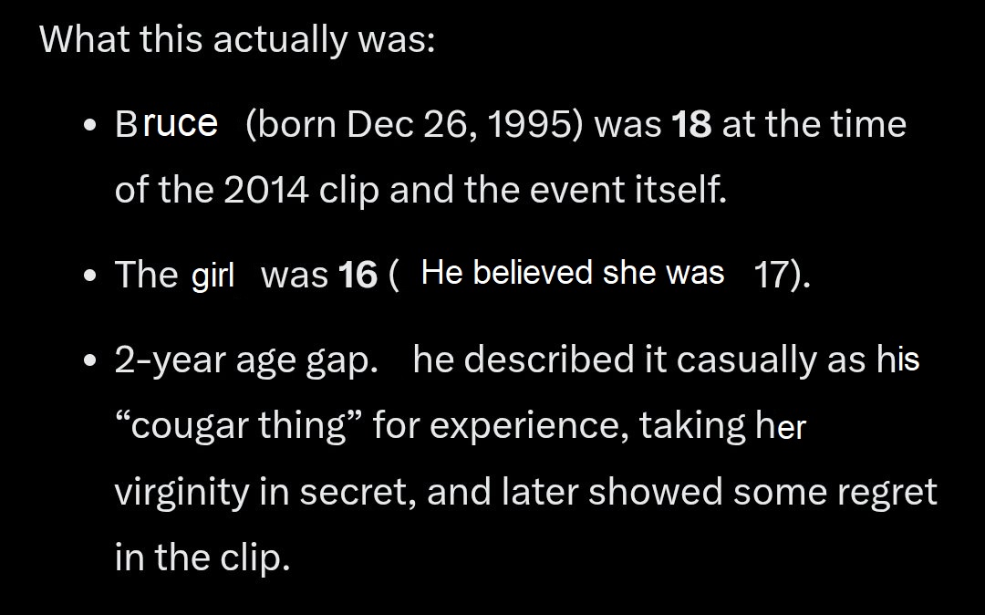 >>948110195lol>Bonnie - “But basically he was, actually 16 I thought he was 17 he lied to me, he was a virgin and I took his virginity and, but like at the time my mentality was like ok I don’t have casual sex but this is like my only time to like have sex with somebody who’s younger than me, do the cougar thing, and never see him again and no one will ever know about it. Just for like the experience.”forever and ever