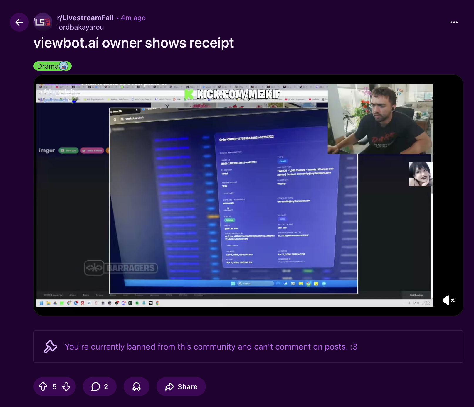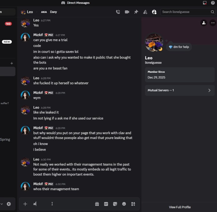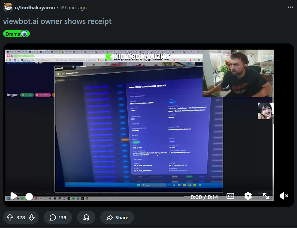 >>948136189the supposed official viewbot x account also posted in mizkifs twitter comm before the clips were spread around