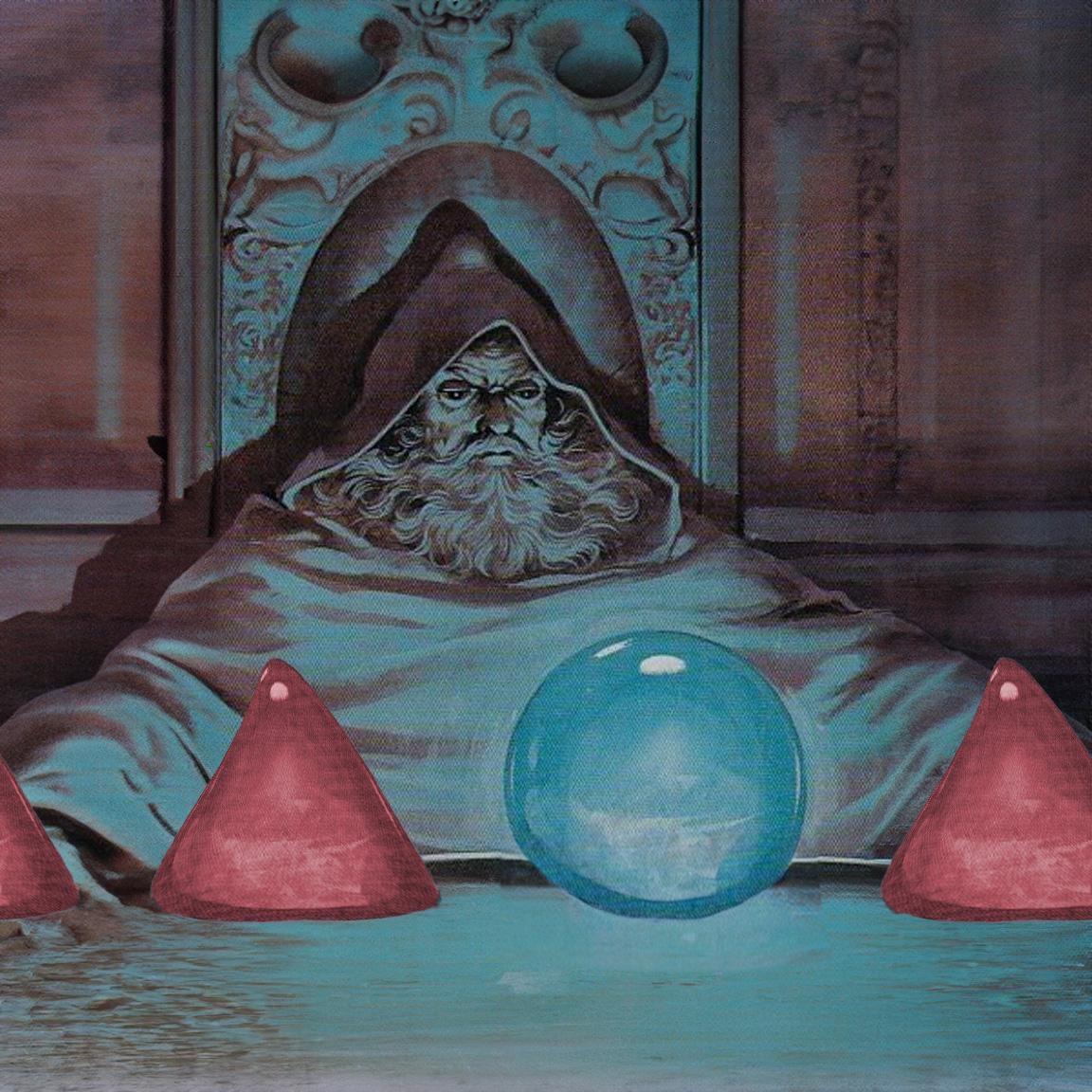 >>948145500>>948145636>dark bald priestess trenchcoat, white face dark mage with needles poking outward from his head holding a golden tesseract, flesh for eyes cheshire grin man maroon face