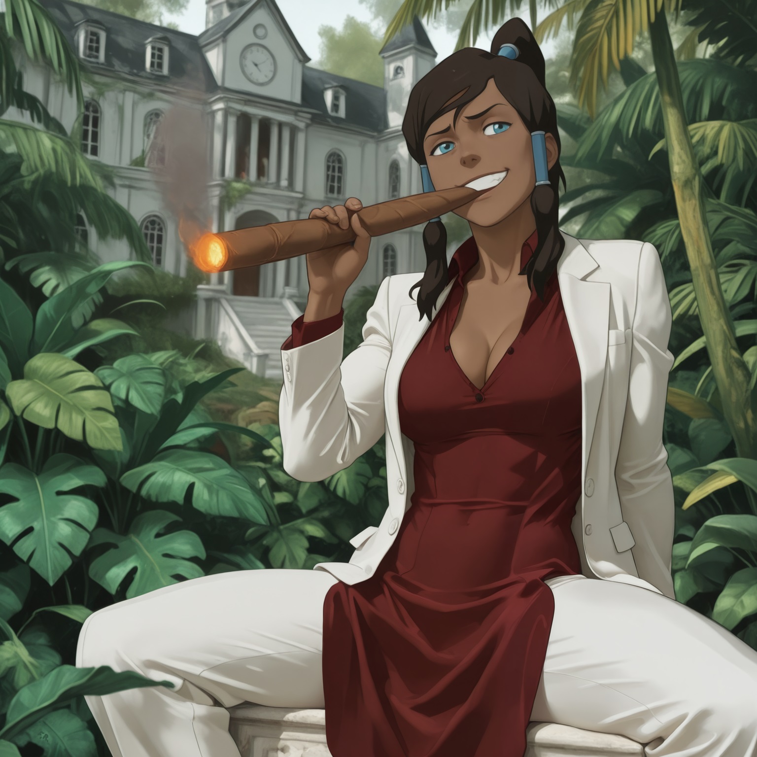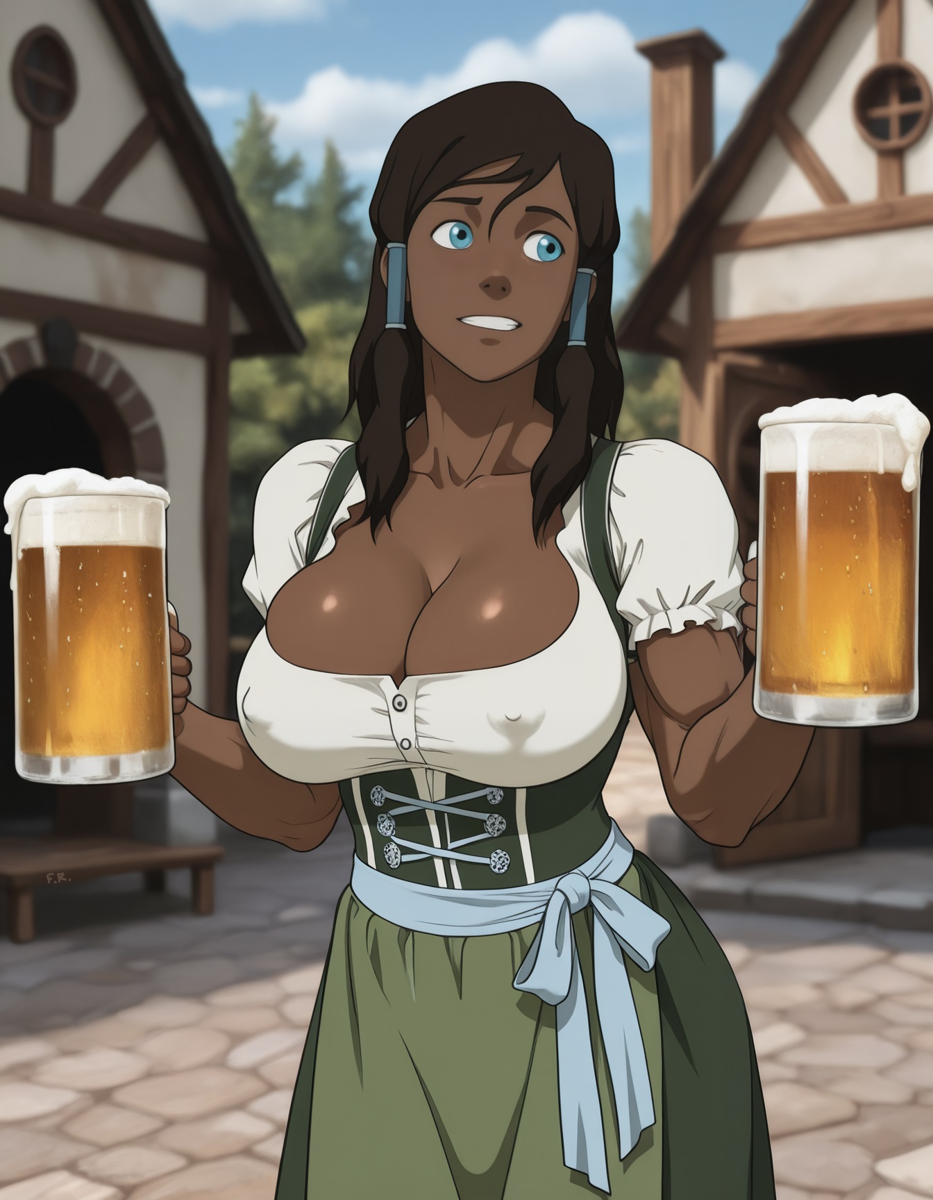 >>948187428I wanna see her with an open back linen shirt working hard in a field, sweat glistening off her dark brown hide