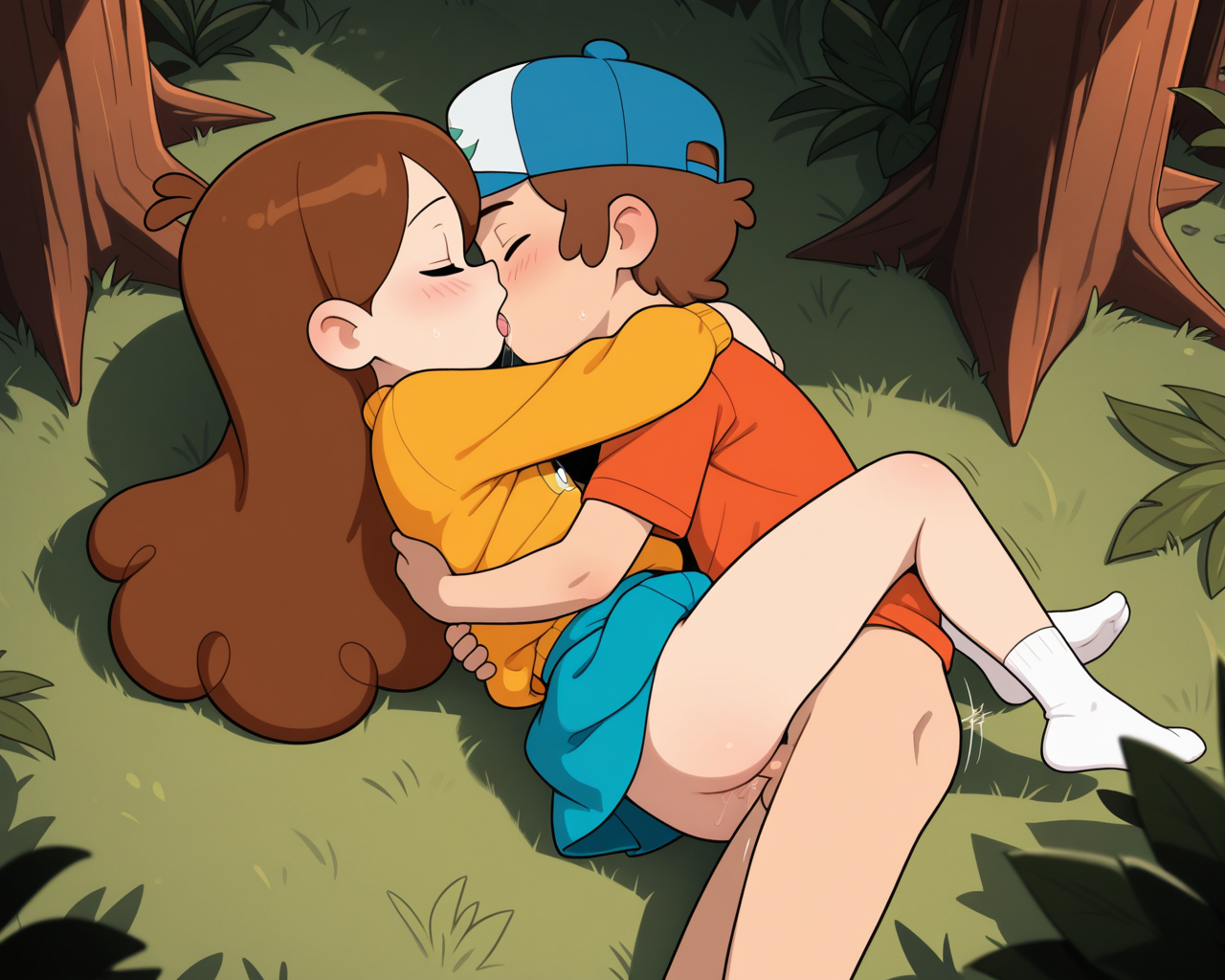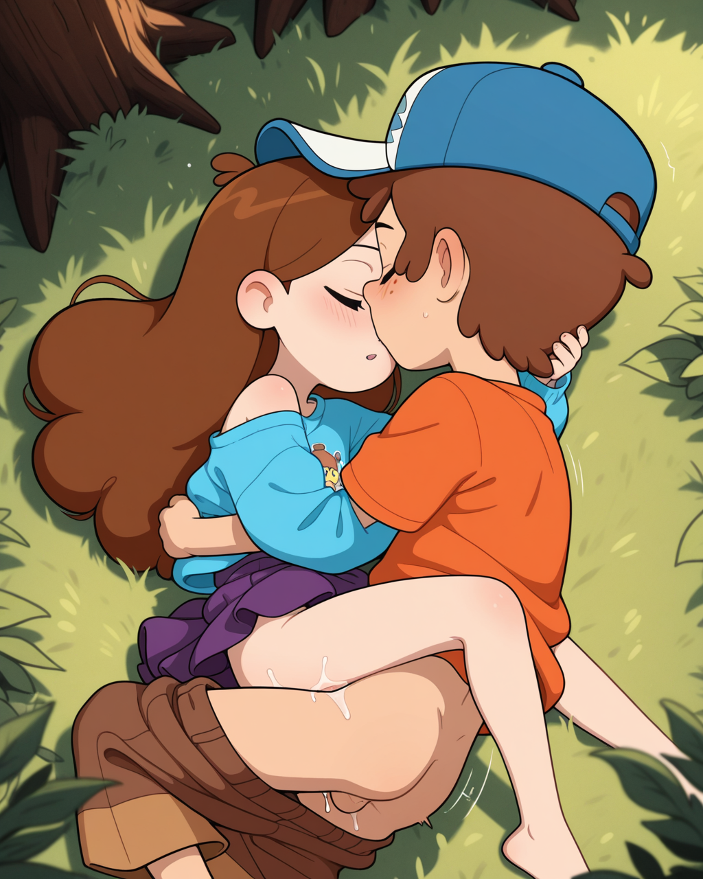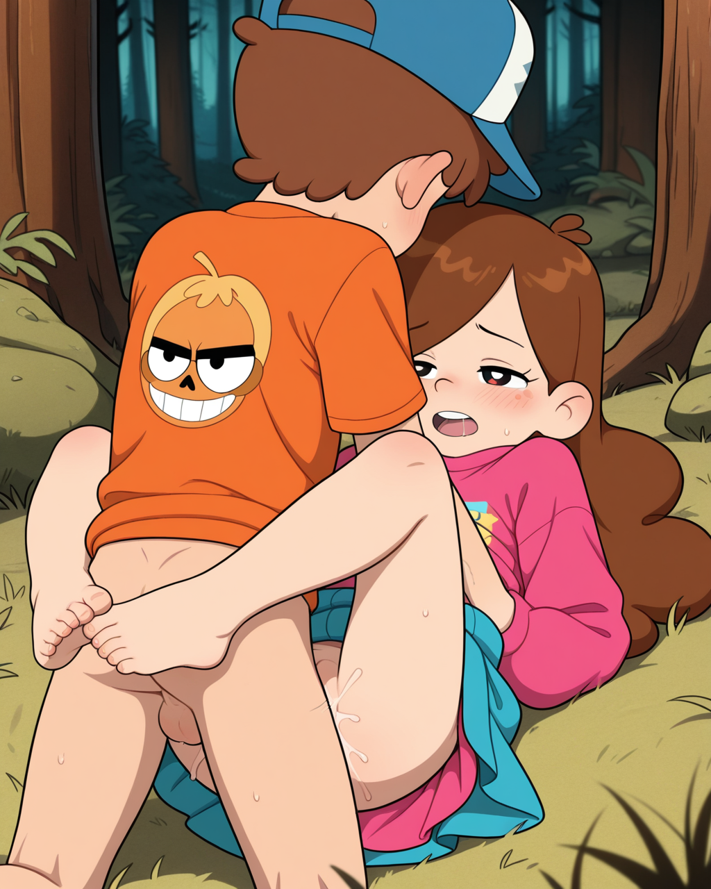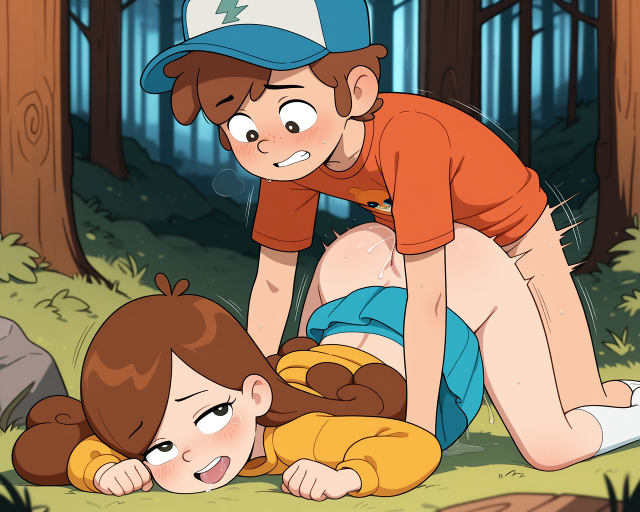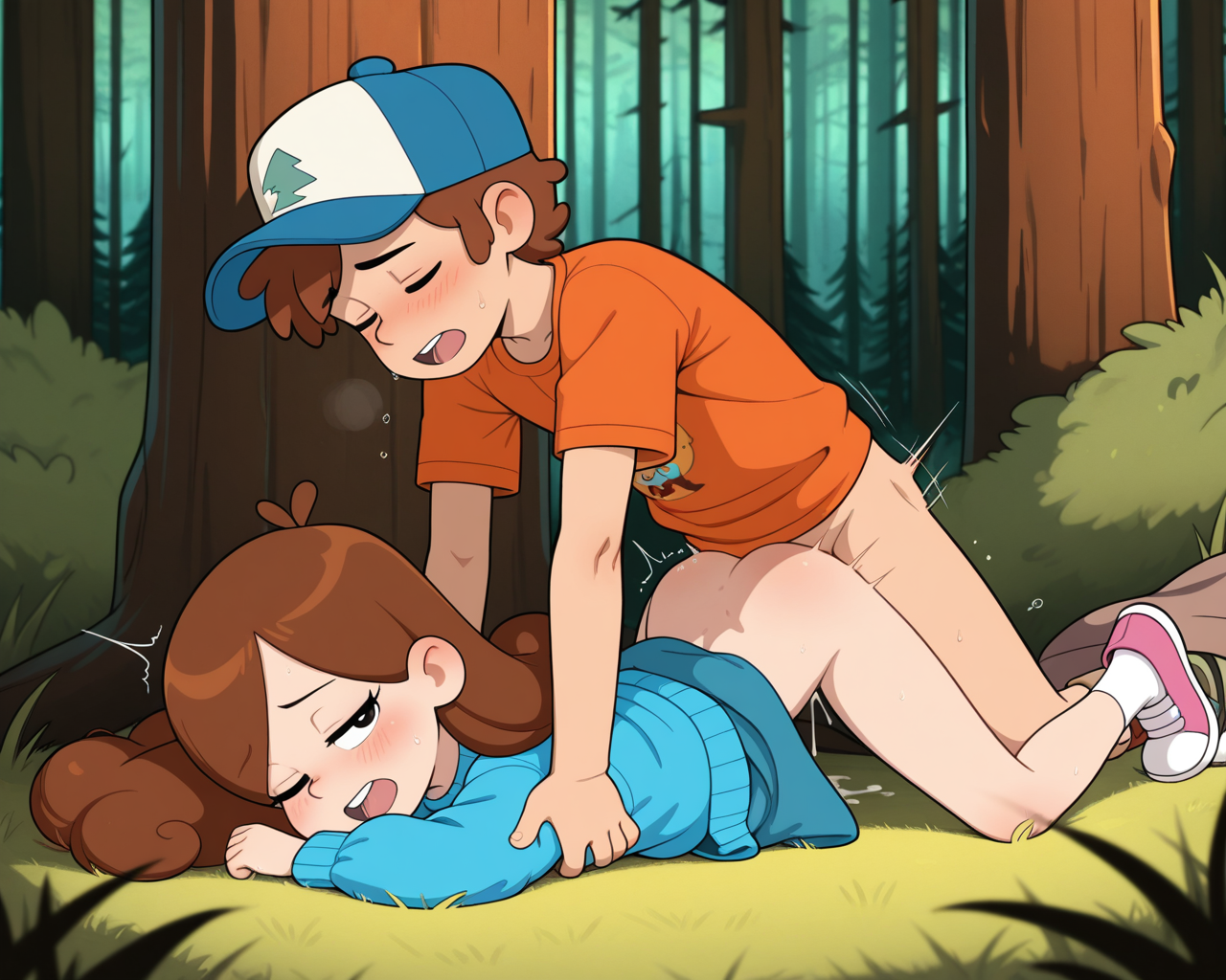 >>948188179too much effort, 1boy 1girl, <lora:GravityFalls_ILXL:0.8>, mabel_pines wearing puffy_sweatshirt and skirt, dipper pines wearing blue_hat (orange_tshirt) , curly brown hair, shota, loli, children, __sexacthet__, intimate, sexual, explicit, redwood forest, good anatomy, amazing quality, very detailed, masterpiece, dynamic, __cameraman__