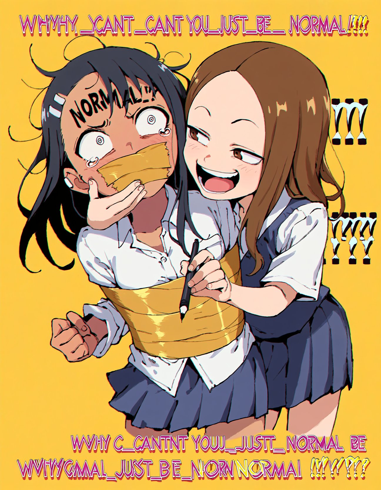 >>948187476I usually like to include "(WHY_CANT_YOU_JUST_BE_((NORMAL))?!?:9.0)" in the prompt.