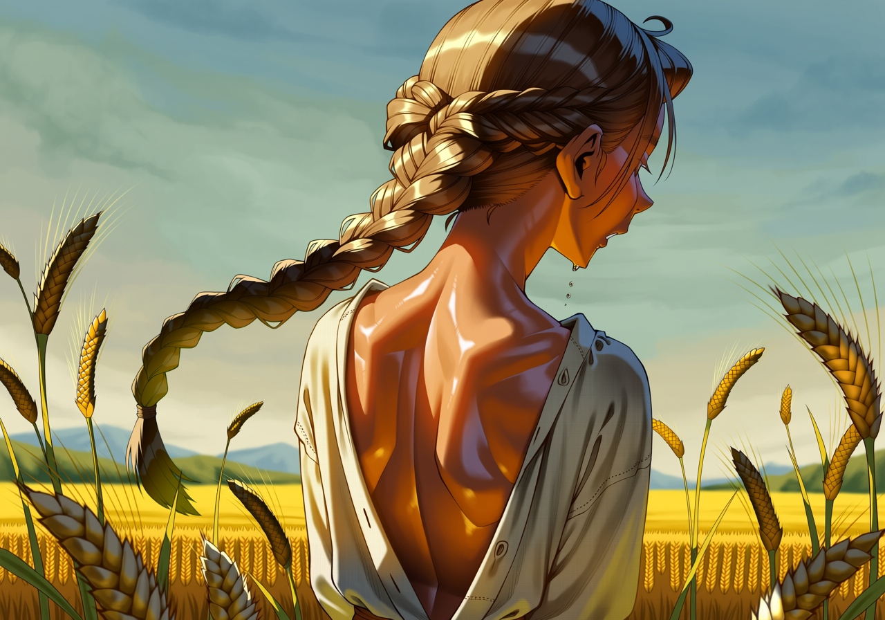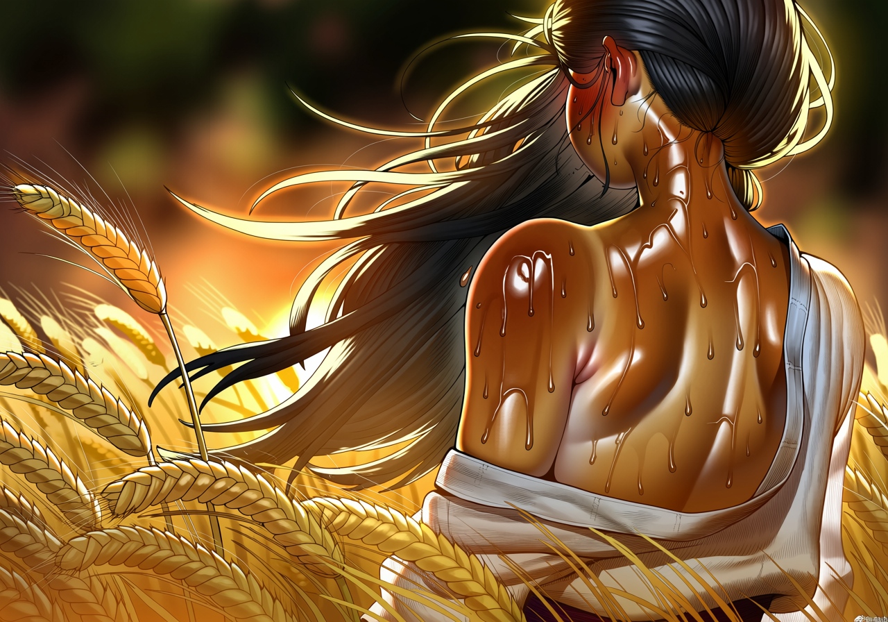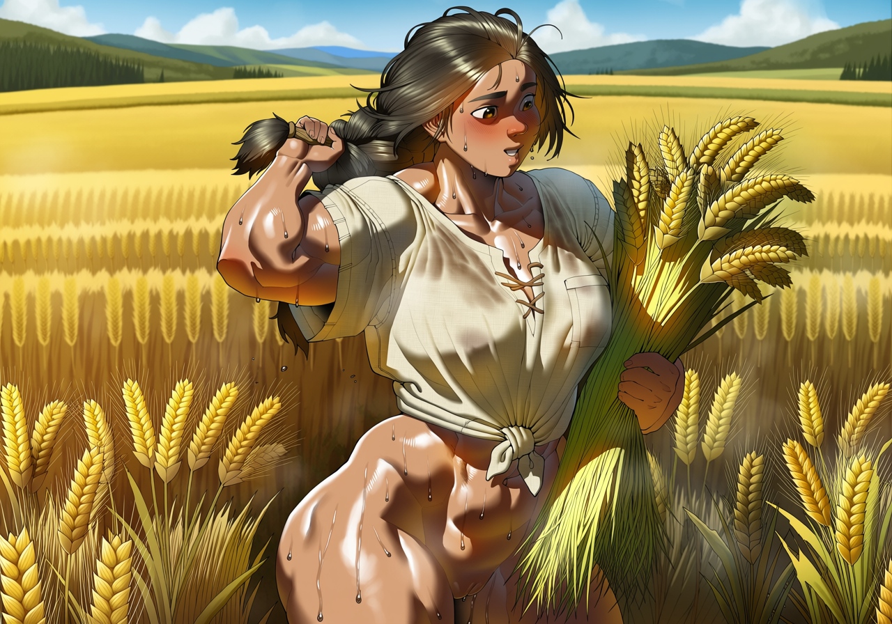 >>948187462>open back linen shirt working hard in a field, sweat glistening off her dark brown hidesuch a nice visual